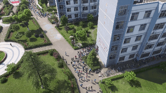 “呜…呜呜…呜呜呜”随着警报骤然响起,同学们在班主任的指导下快速抱头、捂口,井然有序地按照预定疏散路线,迅速从教室撤离到指定位置。