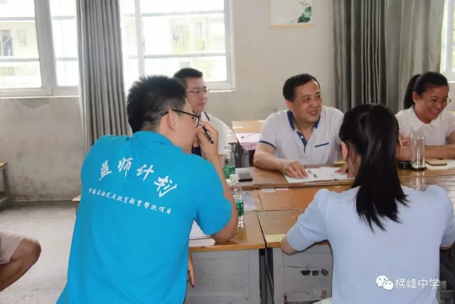 6月12日上午,听说专家要来,学校全体老师(包括2017届高三全体教师)早早地在学校大会议室等待,早上8:00,北师大附属实验中学的专家一行踏进了横峰中学的校园! 学校党总支书记、校长苏万林在学校门口热情迎接北师大附属实验中学校长助理张建国等专家一行11人的到来,在大会议室,苏校长向全体教师介绍了一行人,表达了对专家们的热烈欢迎,北师大附属实验中学校长助理张建国对参加活动的全体老师介绍了“益师计划”的项目情况和听课教师的任务要求。 随后,学校领导、两校各学科组长还在学校小会议室对活动规划、两校教研工作的内容进行了热烈探讨。 上课啦! 按照活动安排,我校语数英、物化生六个学科各有两位老师执教了一堂公开课,学校教师按各自学科分组(政史地、音体美教师参加语文、数学组活动)聆听公开课,北师大附属实验中学专家一行分学科分头聆听课程内容,活跃的课堂气氛、生动的实验内容给专家留下了深刻的印象,他们纷纷对学生的素养和教师的教学能力点赞。 分组评课促进步!