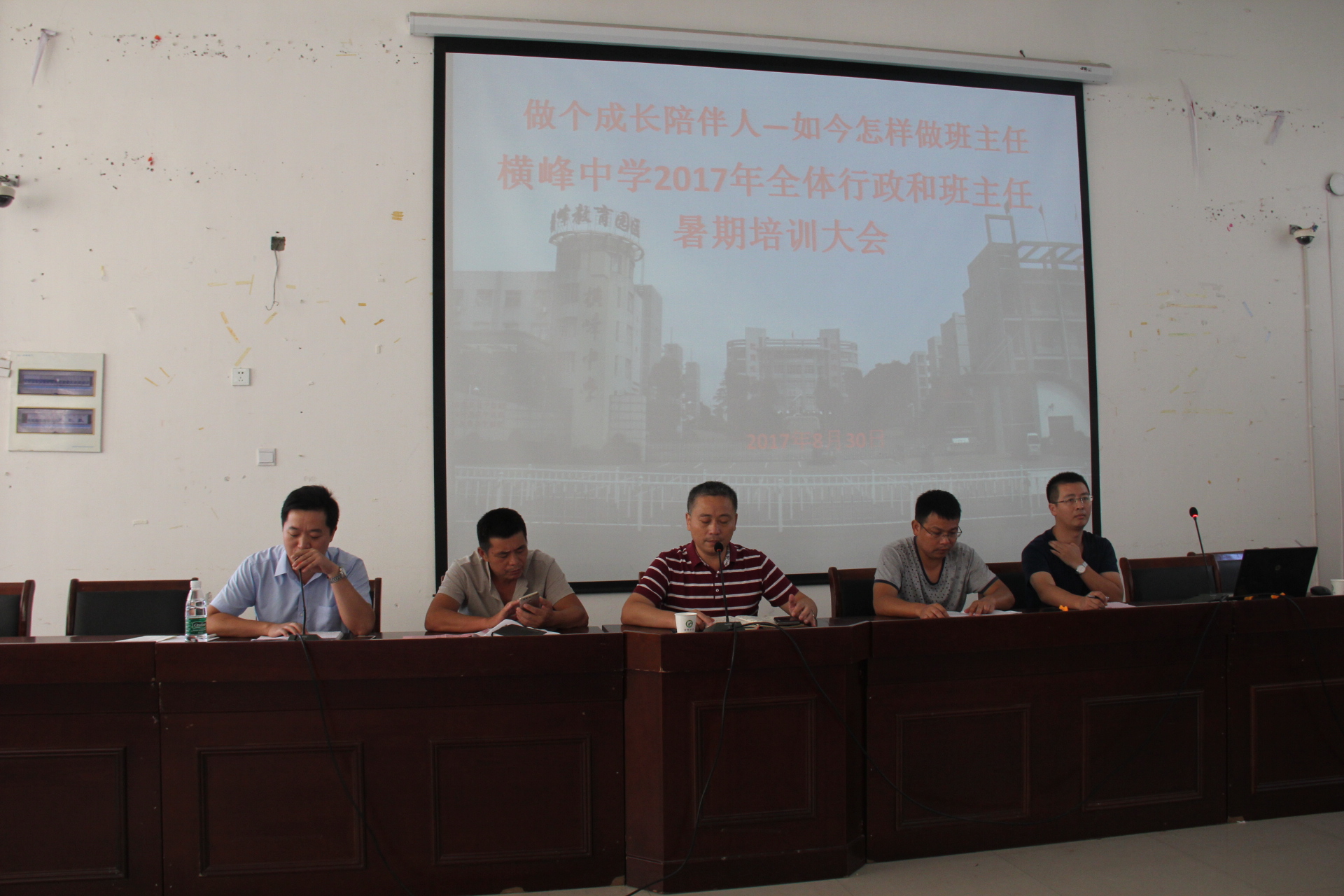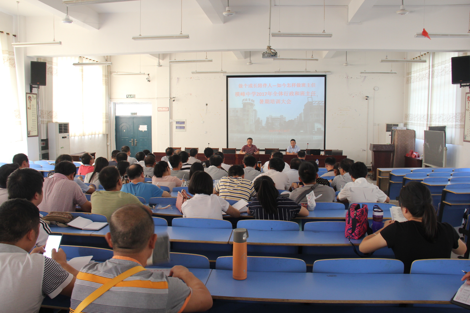 兵马未动,粮草先行。学生还在家过暑假,老师们已在紧锣密鼓地准备着开学,横峰中学历来早谋划、早部署,确保新学年工作万无一失。这不,2017年8月30日上午8:30,学校特邀“国培计划”网络教研员田金辉教授莅临我校对全校行政和班主任进行了一次开学前的培训。横峰中学党总支书记、校长苏万林担任培训大会主持。
