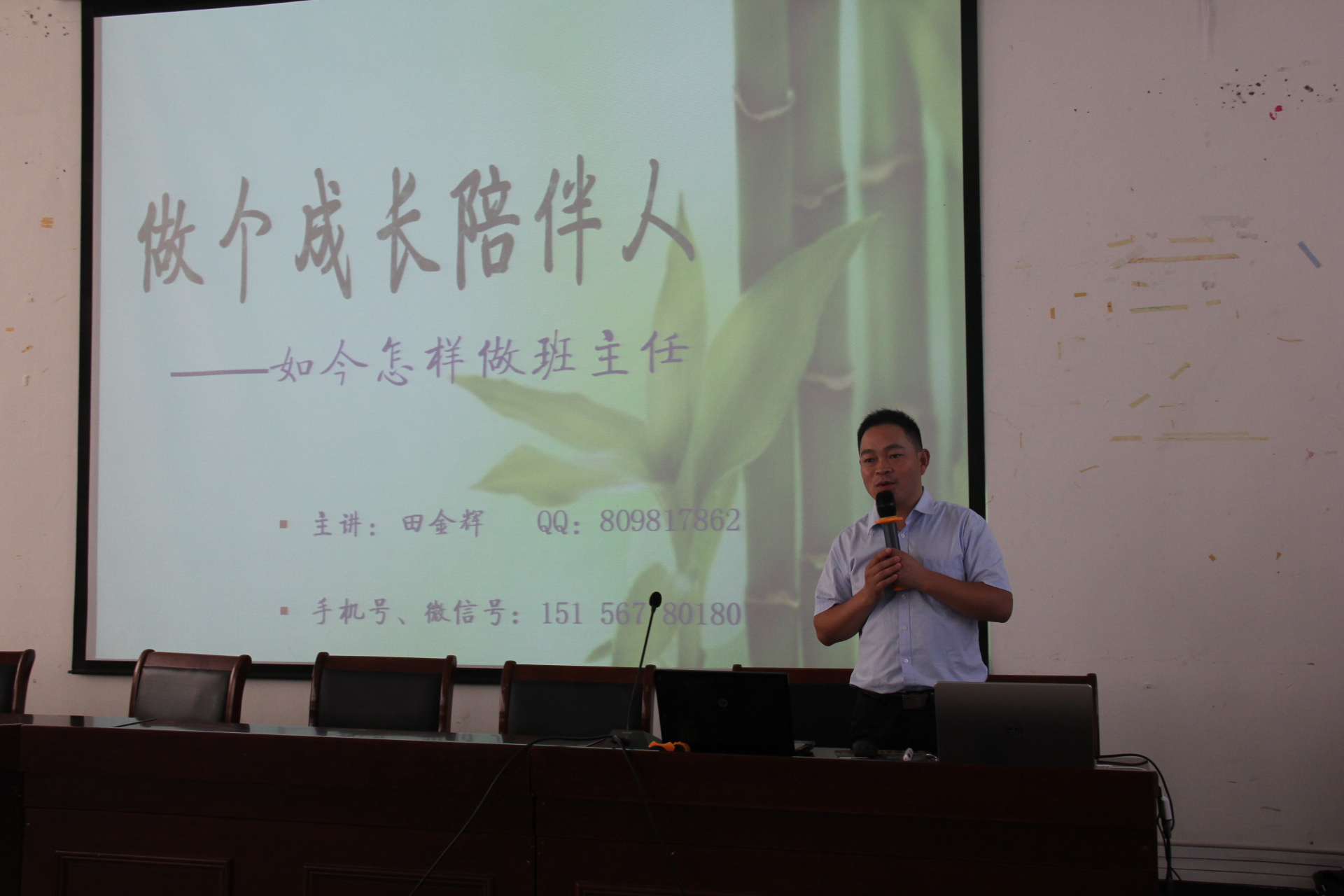 田老师围绕“做个成长陪伴人—如今怎样做班主任”这一主题,以其谦逊的态度,真挚感人的讲述诠释了班主任工作中的幸福感。伴随着一个个生动小故事,一个个精彩瞬间的捕捉、一张张记载着他教育之路照片的呈现,与会老师深刻理解了他报告的主题的内涵。