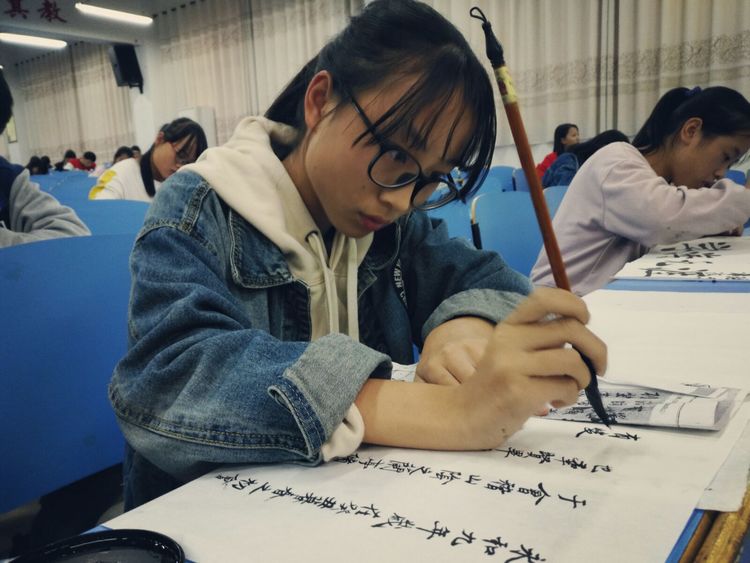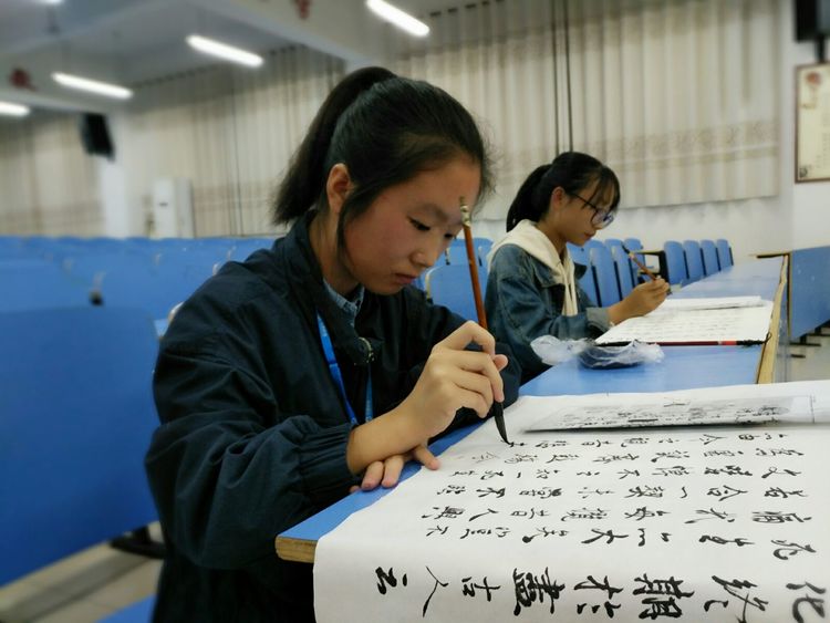 本次大赛分为毛笔字、硬笔字两组进行,在比赛中,同学们有的尽情挥毫泼墨、腾蛟起凤,展示了毛笔书法的魅力和独特风格;有的铁画银钩、刚健柔美,展示端正美观的秀姿。