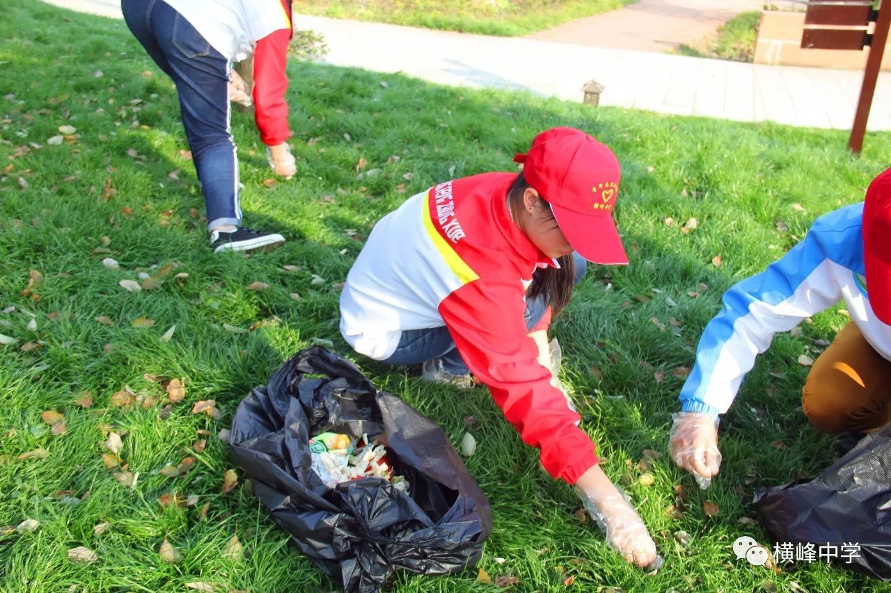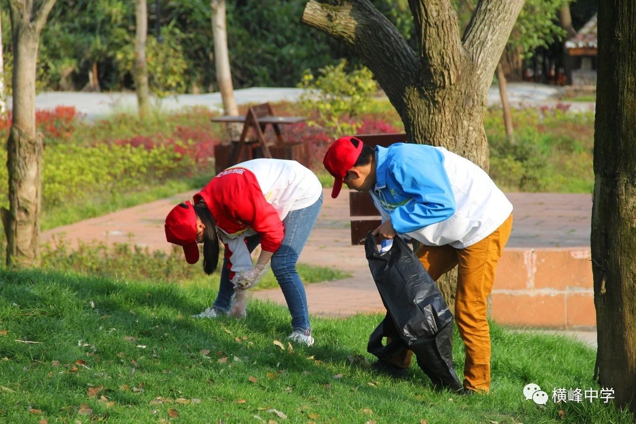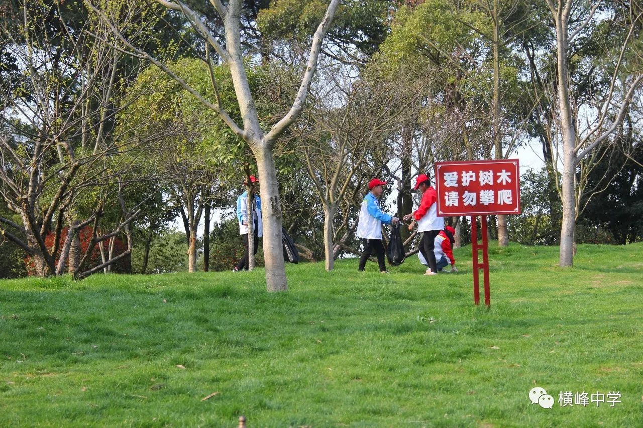 01 打扫人民公园 3月12日下午,在校团委徐婉松书记、志愿者协会指导老师龚希优的带领下,横峰中学志愿者协会的青年志愿者们来到人民公园,分成若干个小组,提着垃圾袋、拿着扫帚,穿梭在公园各个角落,清理烟头、纸屑和果皮等杂物。