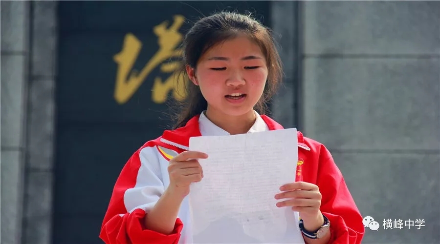 学生代表讲话: 让我们继承先烈的遗志,走中国道路,弘扬中国精神,凝聚中国力量,用以爱国主义为核心的民族精神,以改革创新为核心的时代精神,建设幸福新横峰、美丽中国!