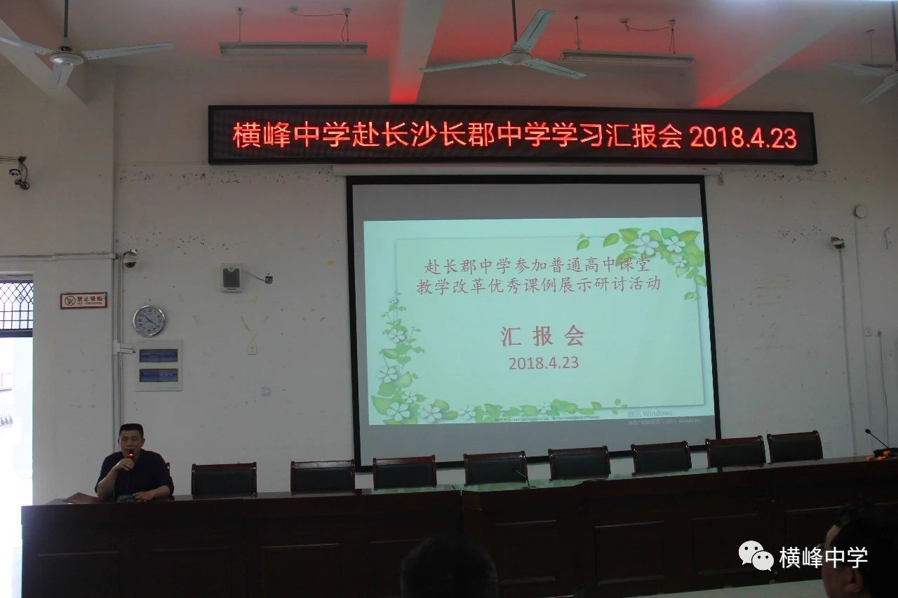 小溪唯有融入大海才不会干涸,思想唯有传播交流才熠熠生辉。 上周,横峰中学党总支书记、校长苏万林携我校九大学科的12位老师来到湖南省长沙市长郡中学参加普通高中课堂教学改革优秀课例展示研讨活动。在这个春光无限、春芳未歇的四月,大家走进百年名校,获取新高考改革背景下的课堂教学、学校管理的源头活水。4月23日,世界读书日,今天下午,横峰中学全体教工聚集在校艺术楼,聆听12位外出学习老师的心得,学习、品读长郡中学这本大书里百年积淀的文化底蕴,借鉴其创新思想,副校长洪广罗主持本次汇报会。