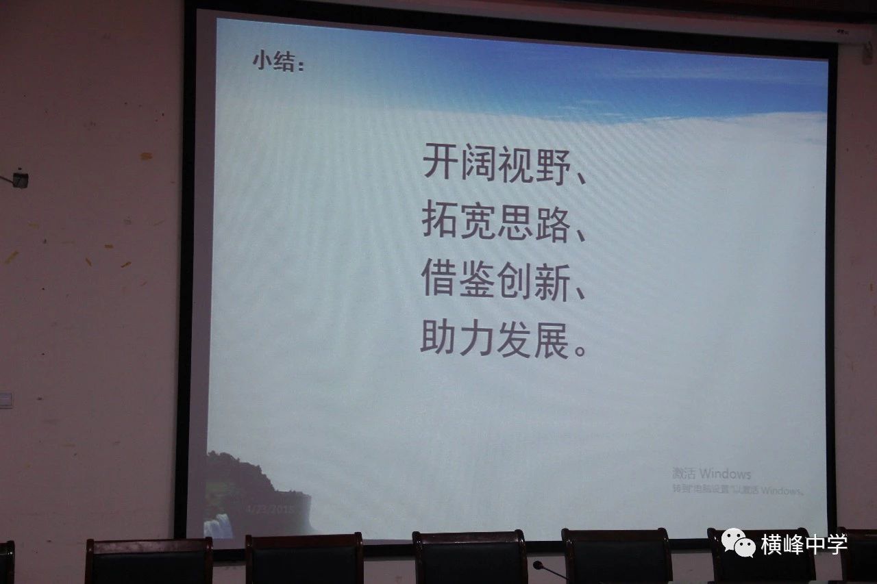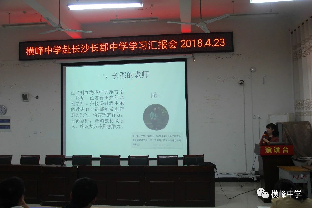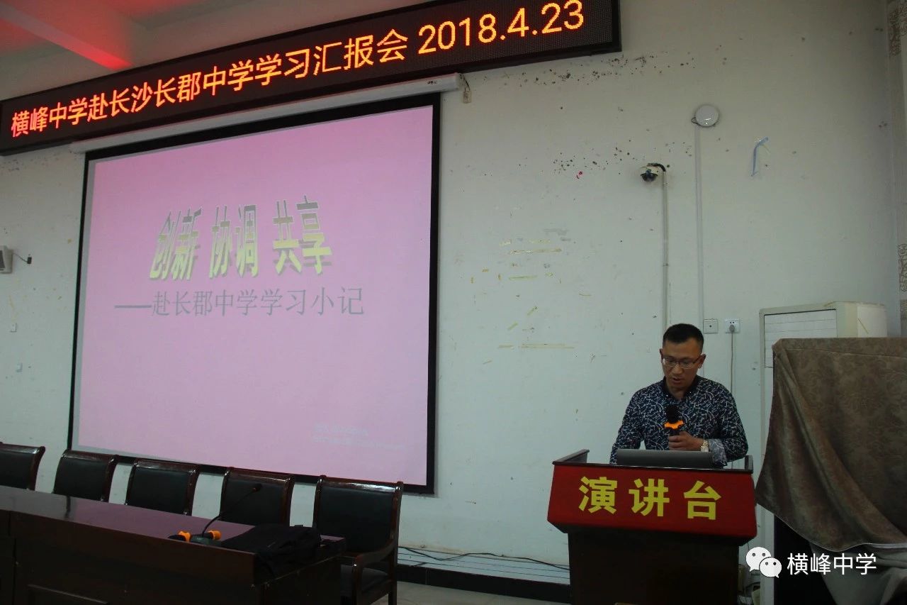 “一流学校靠文化管理,只有横峰中学三分之一大的长郡中学小而精致,全校充满信任氛围,学校信任教师、教师信任学生,课堂和管理充满创新。”12位教师的汇报结束后,苏万林校长走上主席台,发表他在长郡中学的学习心得,并结合我校实际,介绍长郡中学的高效课堂开展模式,尤其是印象深刻的前五分钟分析考纲,再用二十分钟精做、精讲的复习备考模式。 人间四月芳菲尽,横中发展不停歇。此次外出学习,七十七年历史的横峰中学从百年长郡中汲取源头活水,进一步助力学校发展。