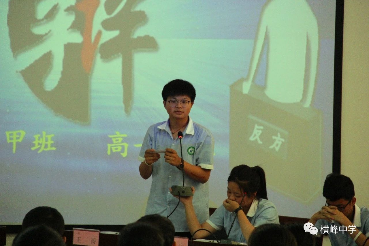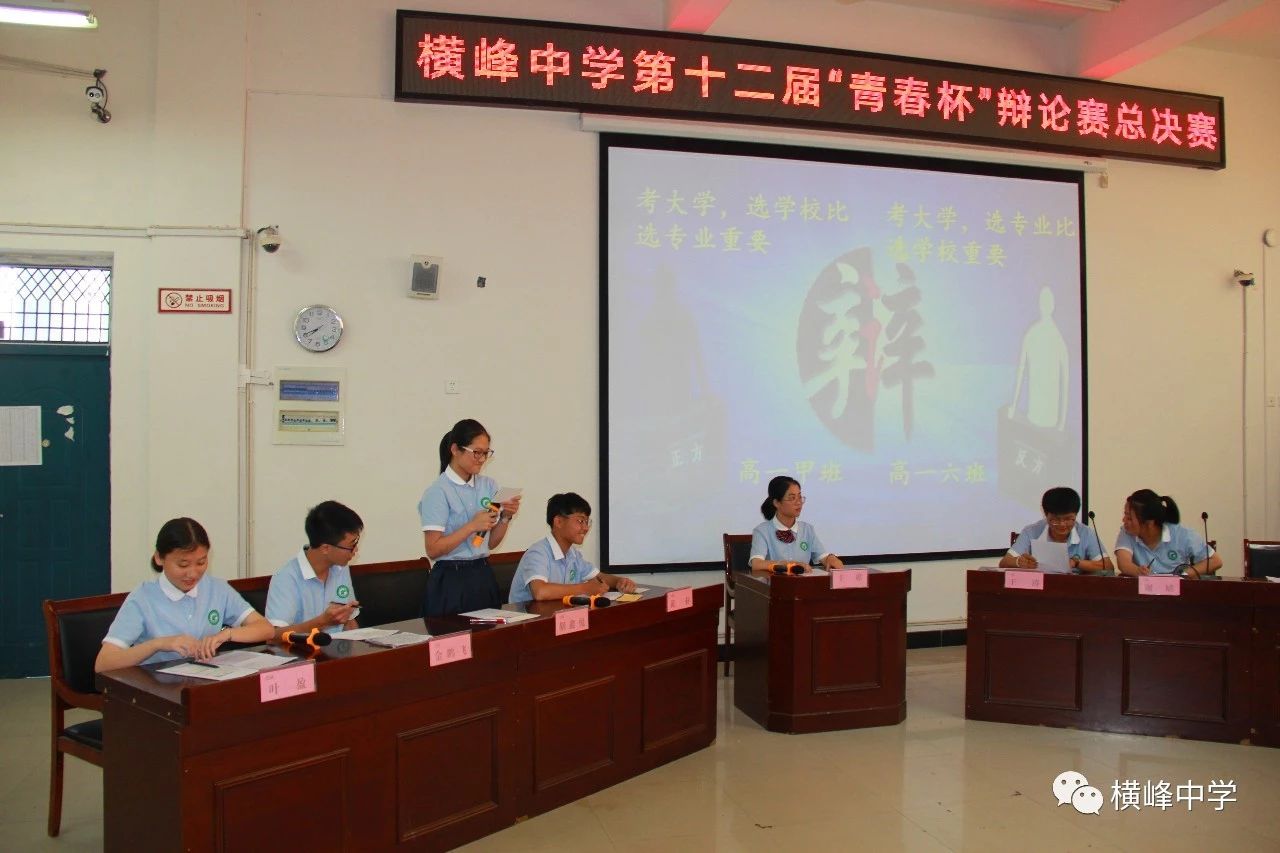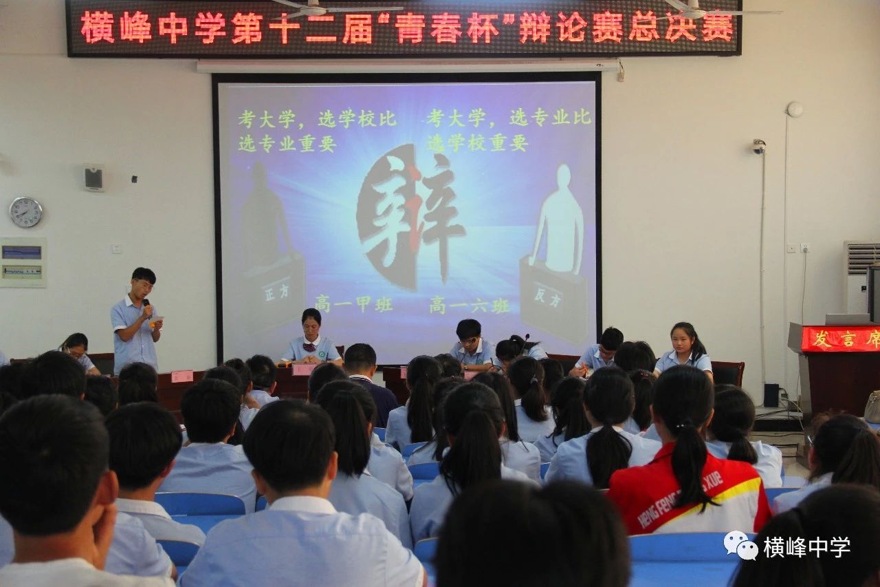 历经近一个月的鏖战,从初赛到复赛、半决赛、决赛的层层选拔,终于迎来了横峰中学第十二届“青春杯”辩论赛决赛,高一甲班和高一6班代表队从高一年级脱颖而出,晋级总决赛。5月29日下午,由校团委主办,校学生会承办的第十二届“青春杯”校园辩论赛决赛在我校艺术楼顺利举行。这一路走来,可谓是非常的坎坷,不过却收获颇深。
