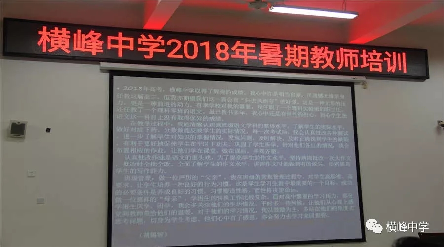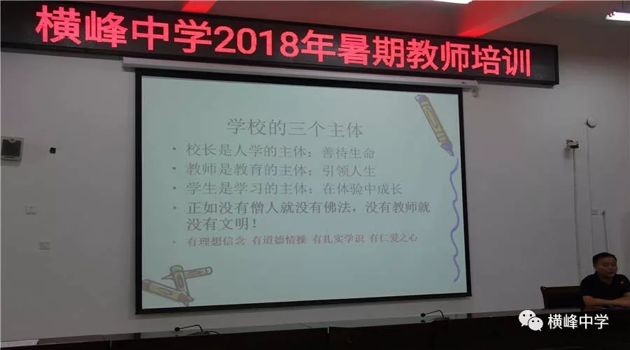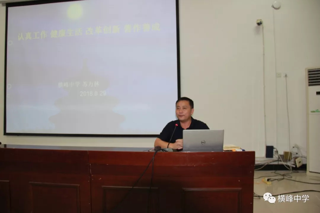 即将告别激情的盛夏八月,崭新的征程即将开启。“我们要做有温度的教育、温情的教育、幸福的教育。”8月29日晚7:00,横峰中学2018年暑期教师培训会第二天的课程拉开序幕,学校全体教工、新进教师等200余人聆听校党总支书记、校长苏万林题为《认真工作 健康生活 改革创新 善作善成》的主旨讲座。