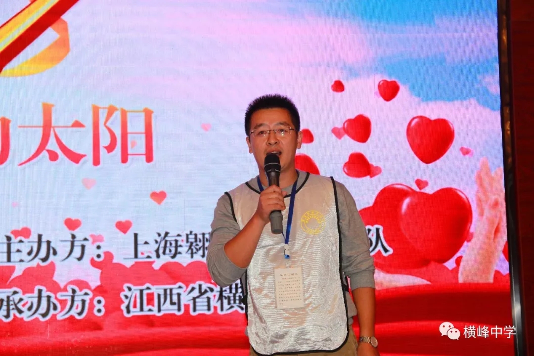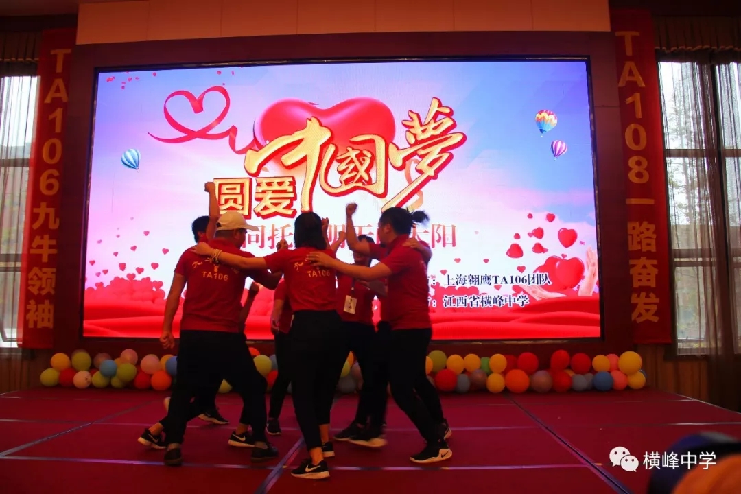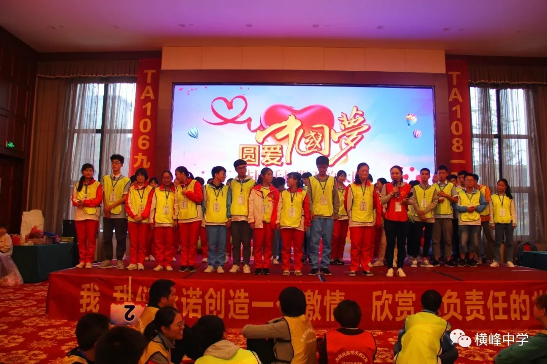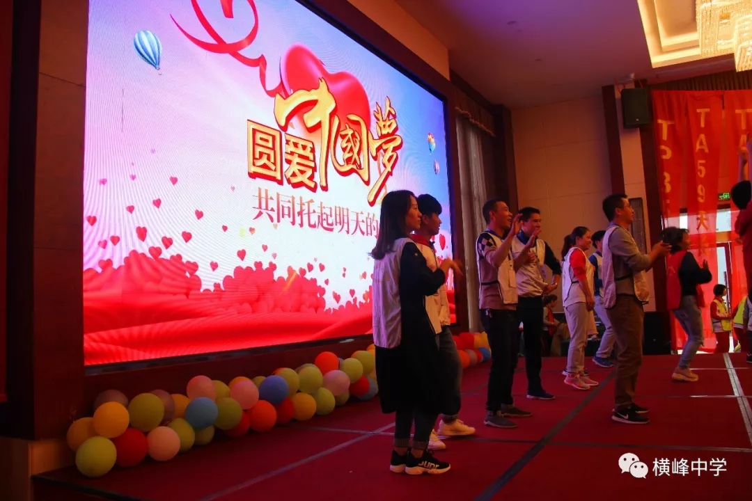 10月14日上午,由TA106团队主办,横峰中学承办的“圆爱中国梦--共同托起明天的太阳”大型公益活动在华云酒店宴会厅举行,横峰中学校务委员、高一年级蹲点校级班子侯弋峰、高一年级主任程世平带领全体师生、家长参加这场充满激情、满怀恩情的公益活动。