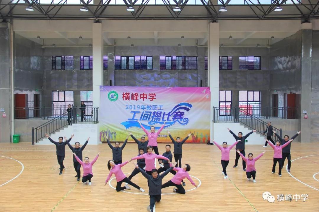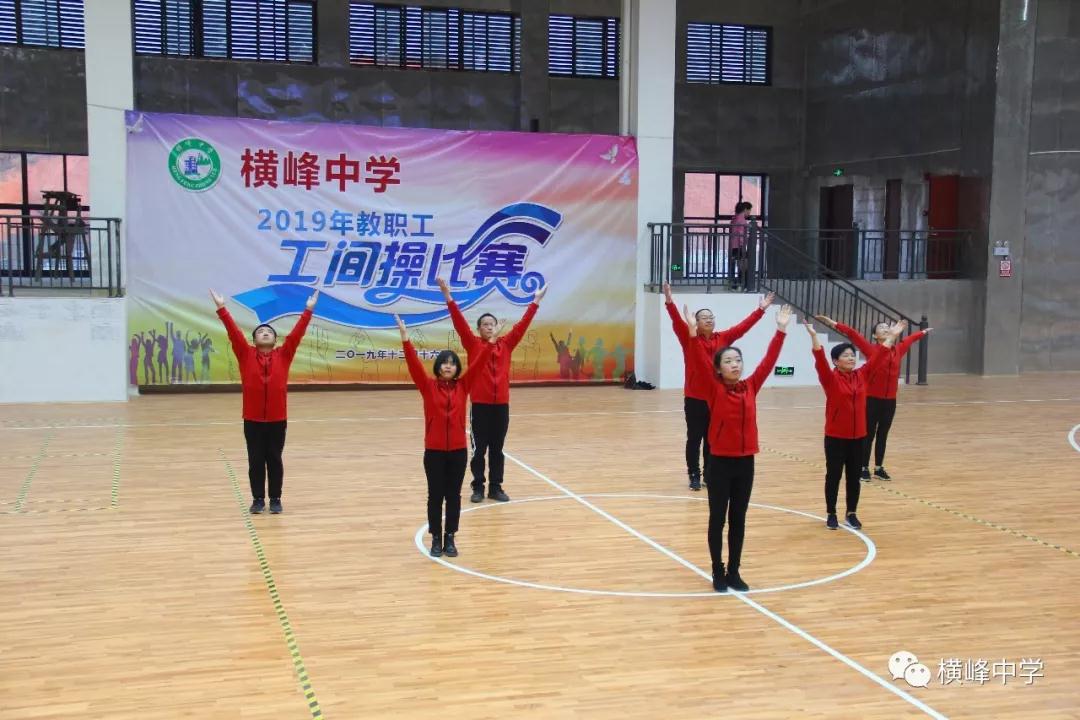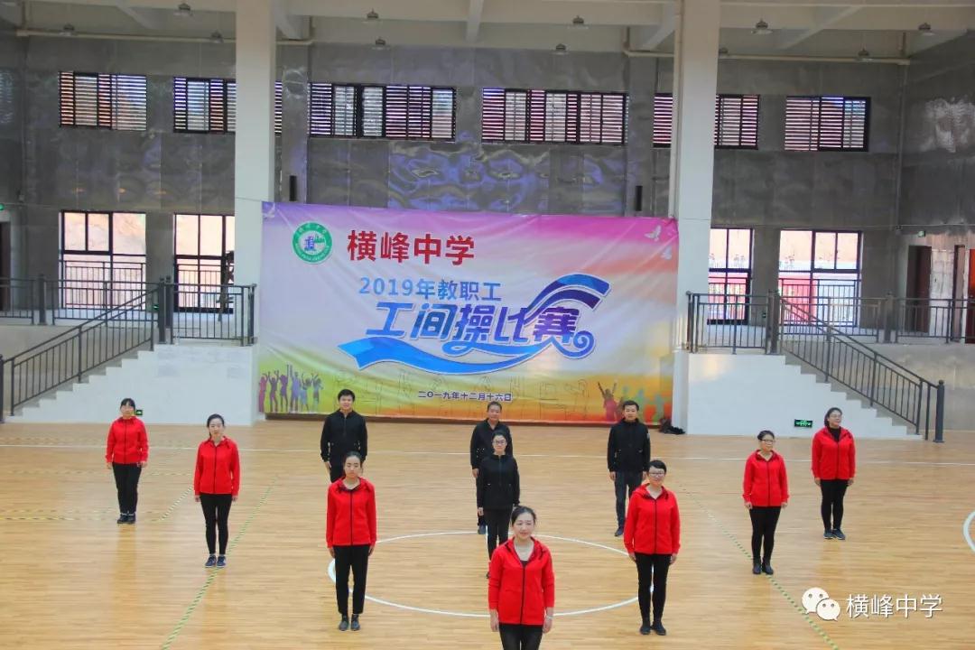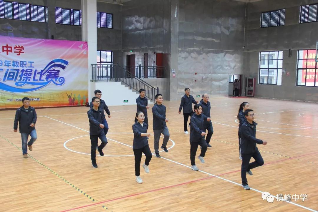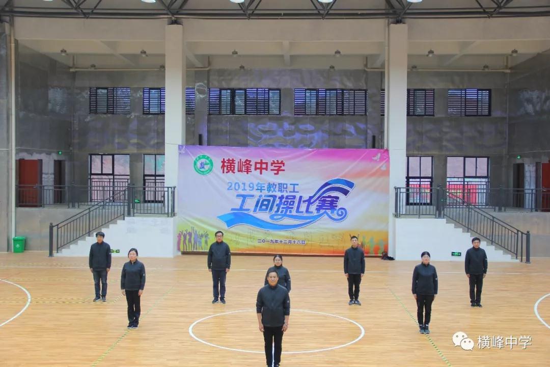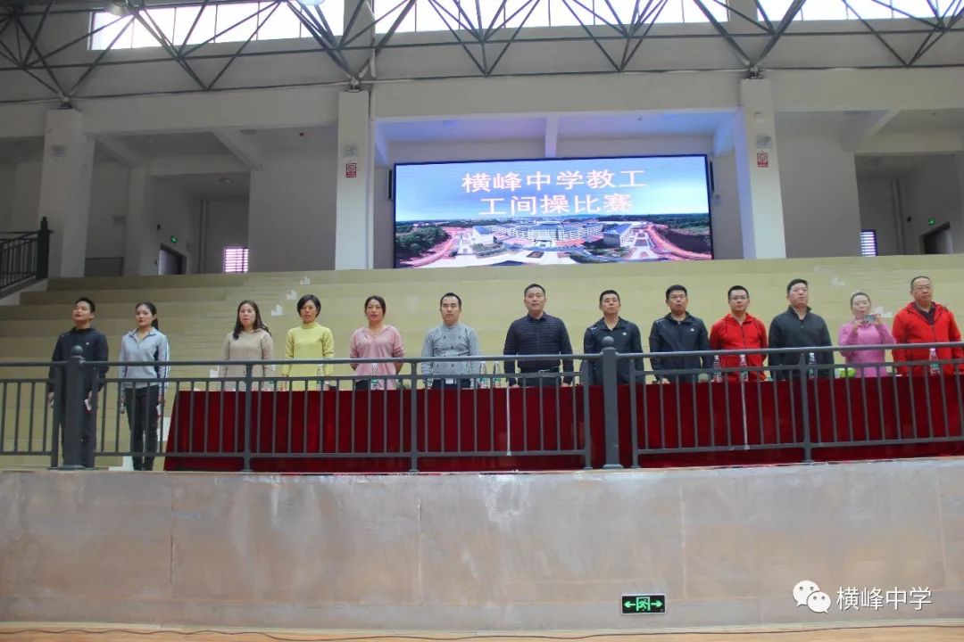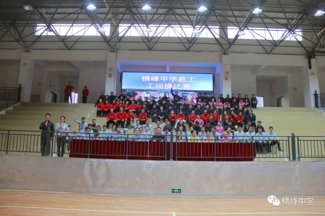 生命不息,运动不止!12月16日下午的横峰中学室内体育馆内掌声不绝,欢呼声震天,在学校工会的组织筹备下,在全体体育老师的精心训练下,全校教职工经过一个多月的准备,迎来了期待已久的2019年教职工工间操比赛。横峰中学党委书记、校长苏万林,纪委书记黄继人,全体校级班子成员和特邀评委袁春仙老师、曾燕老师、邓梅英老师在主席台就座,共同见证了一次运动的盛会,一次凝聚教职工友谊的盛会,一次展现全体教职工健康、团结向上、和谐风貌的盛会。