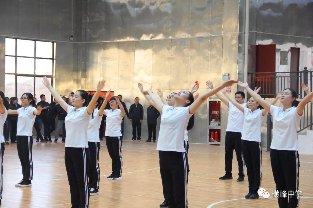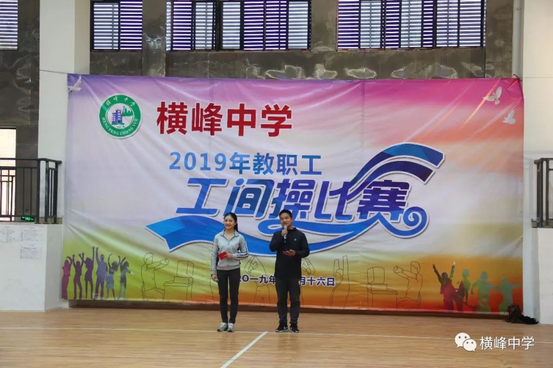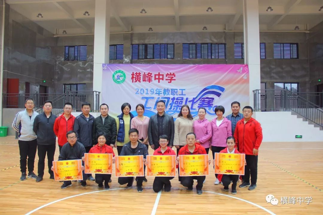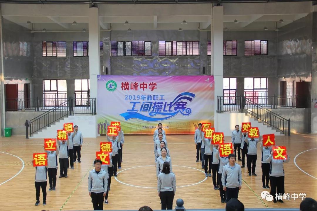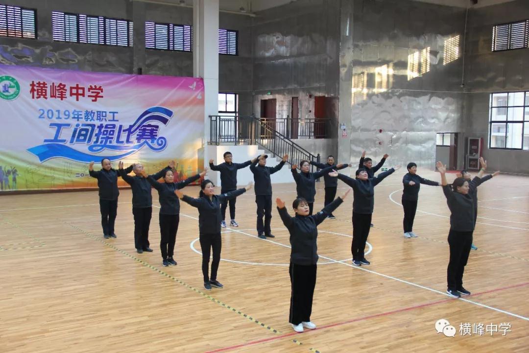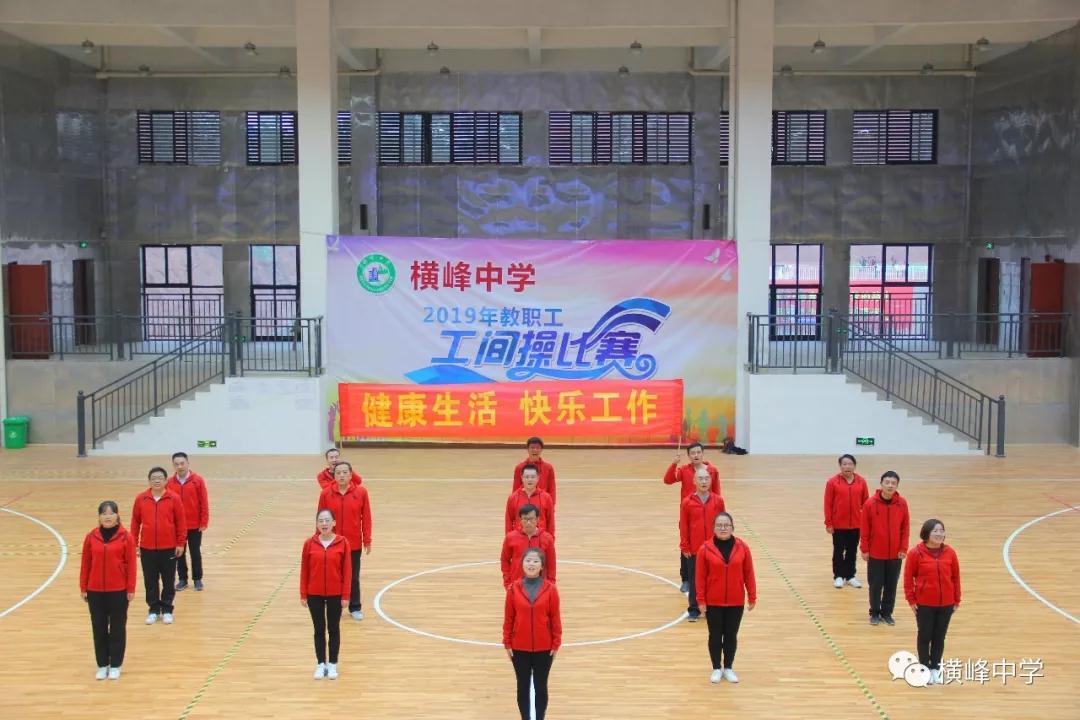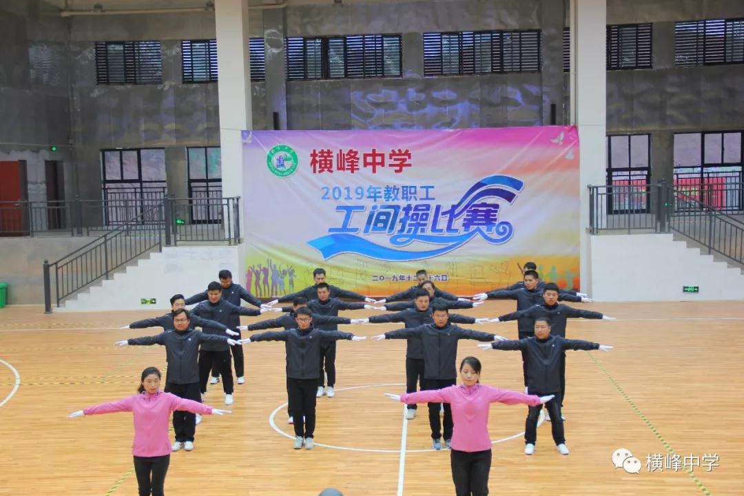 生命不息,运动不止!12月16日下午的横峰中学室内体育馆内掌声不绝,欢呼声震天,在学校工会的组织筹备下,在全体体育老师的精心训练下,全校教职工经过一个多月的准备,迎来了期待已久的2019年教职工工间操比赛。横峰中学党委书记、校长苏万林,纪委书记黄继人,全体校级班子成员和特邀评委袁春仙老师、曾燕老师、邓梅英老师在主席台就座,共同见证了一次运动的盛会,一次凝聚教职工友谊的盛会,一次展现全体教职工健康、团结向上、和谐风貌的盛会。