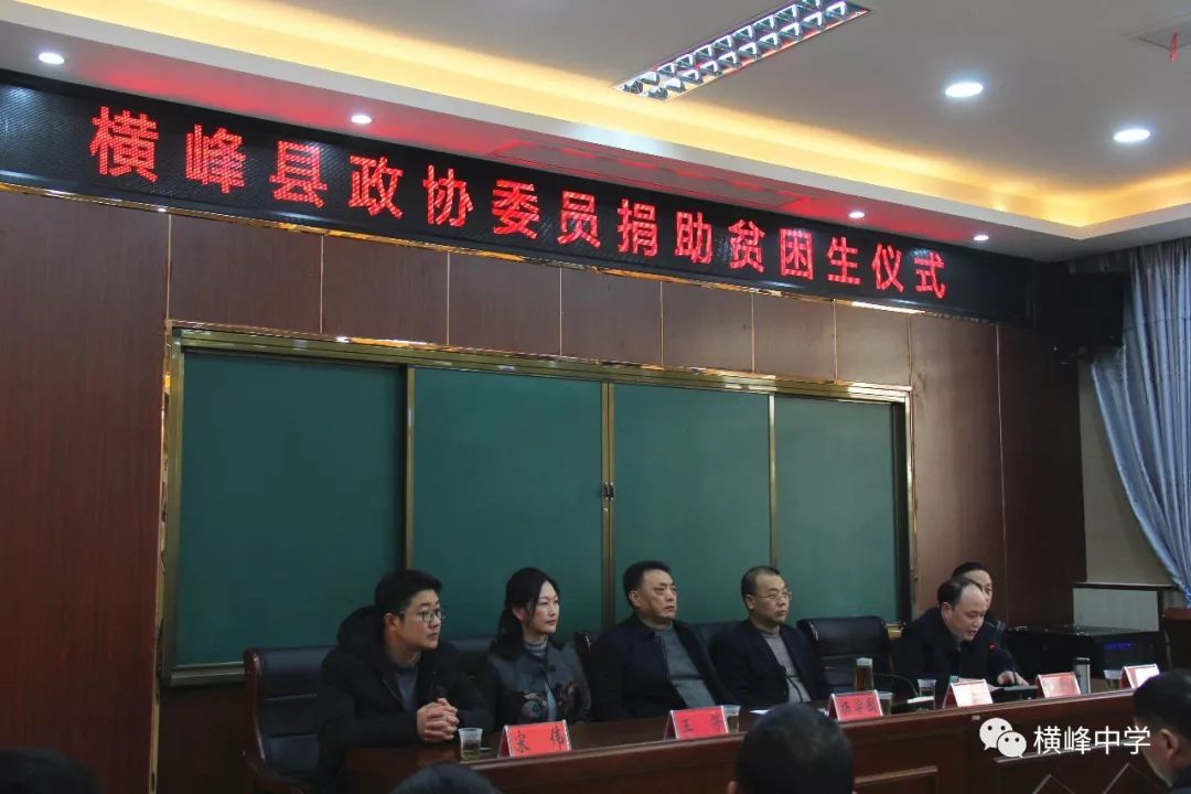 横峰县政协主席杨学园,县委常委、宣传部长戈竹武,副县长王芳,县政协副主席程世炉,县政协秘书长宋伟,县教体局局长陈填心,横峰中学校长苏万林参加本次仪式,见证县政协和委员们施予爱、播种爱、传递爱的善举,县政协副主席程世炉主持仪式。