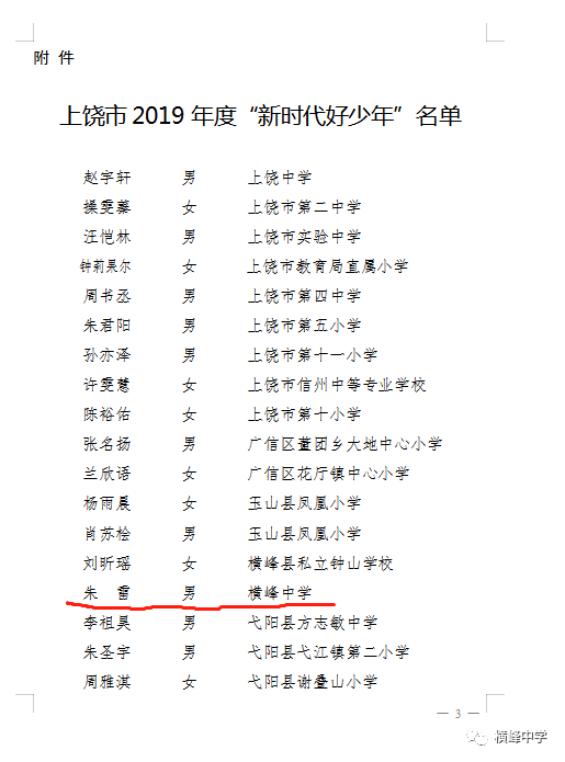 喜讯二:我校2020届高三课改班朱雷同学在市文明办、市教育局、共青团上饶市委、上饶市妇联、上饶市关工委联合开展的上饶市2019年度新时代好少年评选活动中荣获上饶市2019年度“新时代好少年”称号! |