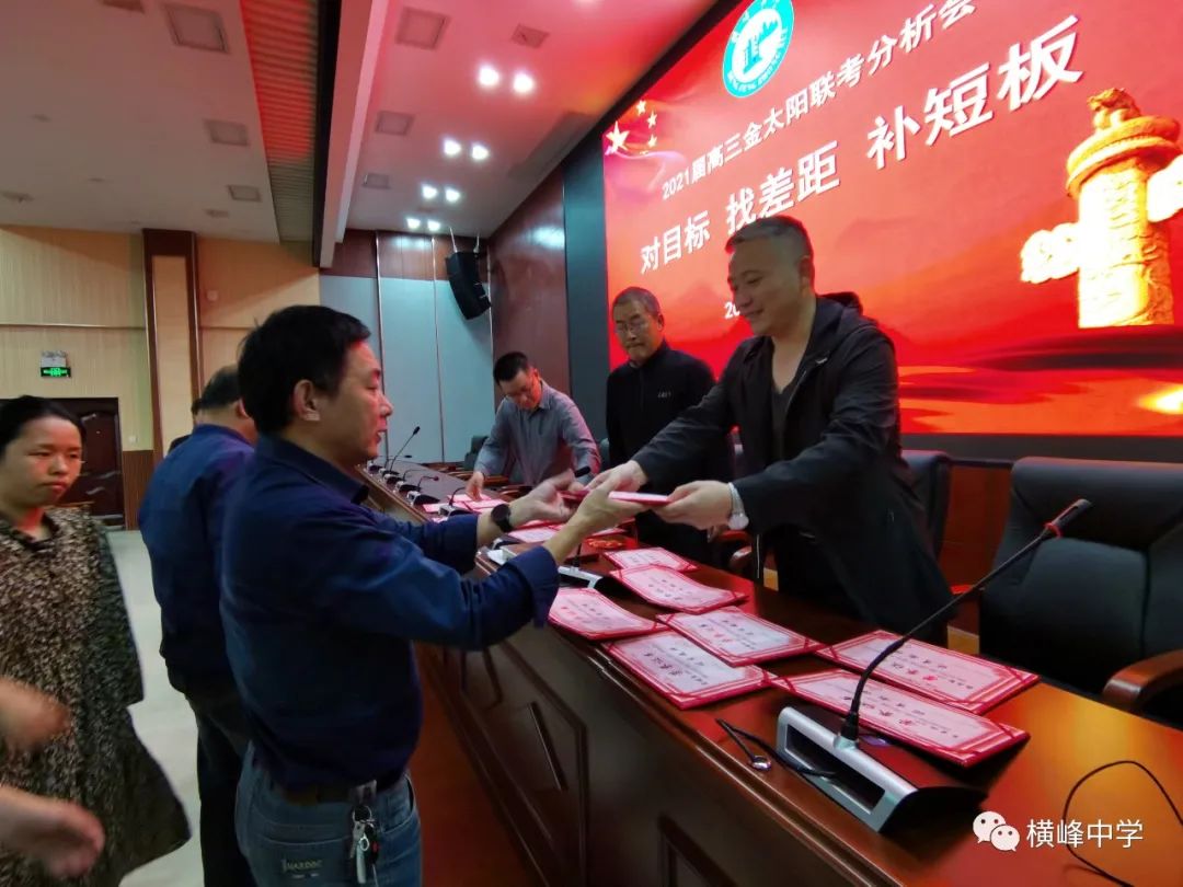 成绩分析后,与会校领导为本次考试优秀单科优秀教师进行颁奖鼓励。