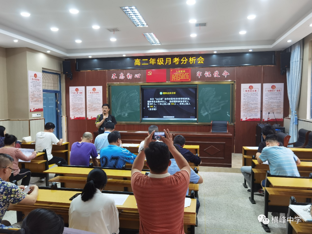 会议首先由总务处副主任刘定佩对此次联考成绩作分析。刘定佩向大家公布了考试的预测分数线及各班上线人数,各联考学校的优生排名,接着从校内各科有效分、单科上线人数、优生平均分、各科平均分等多角度进行分析,既关注优生,又兼顾整体,让各位老师清晰地明确了各自所教学科的教学情况及与同层次班级相比存在的优劣,从而把握后阶段努力的方向。