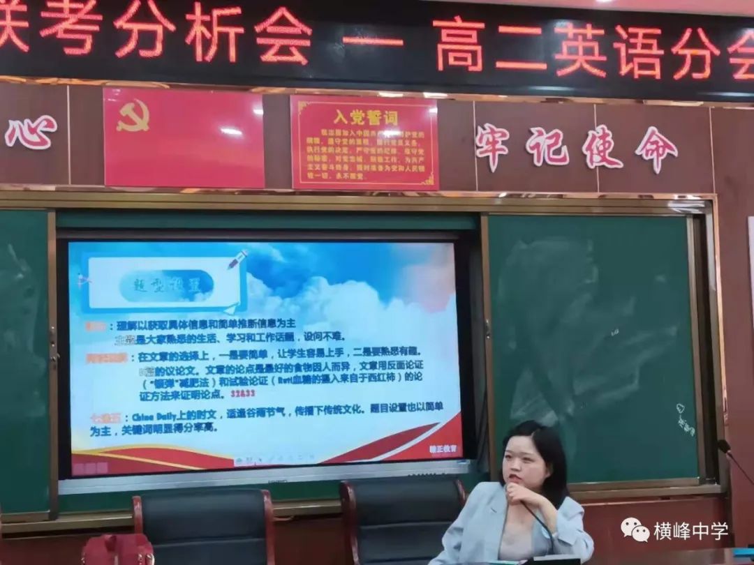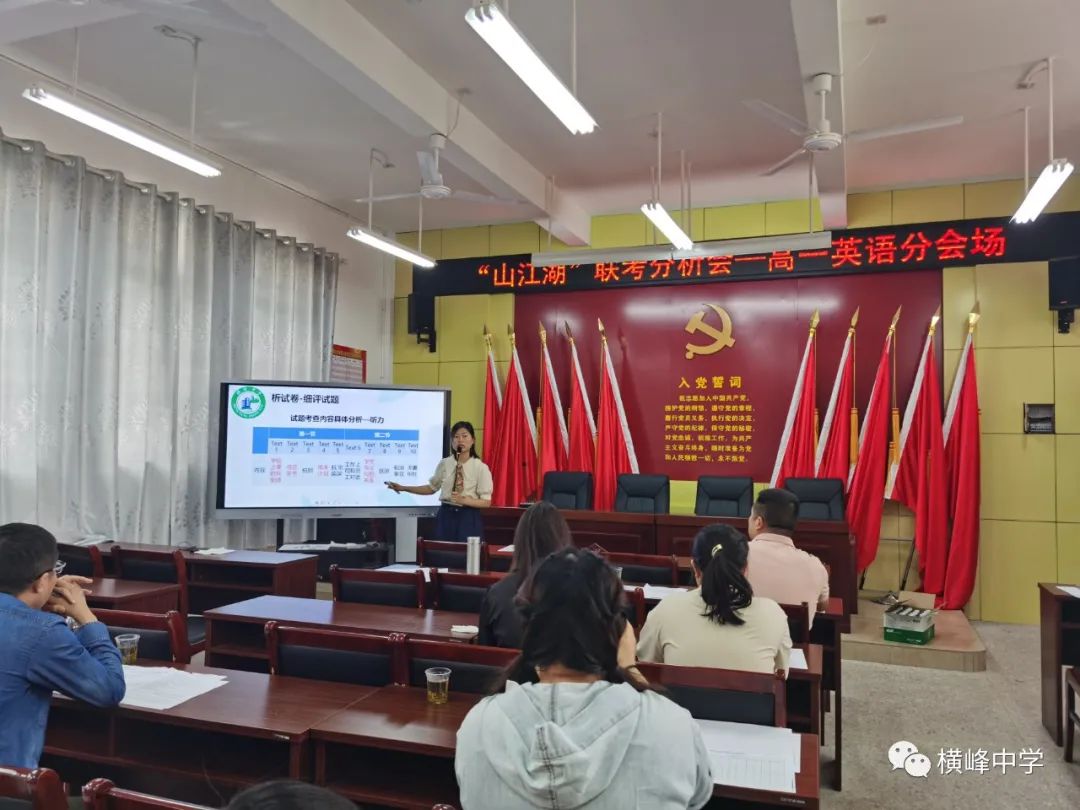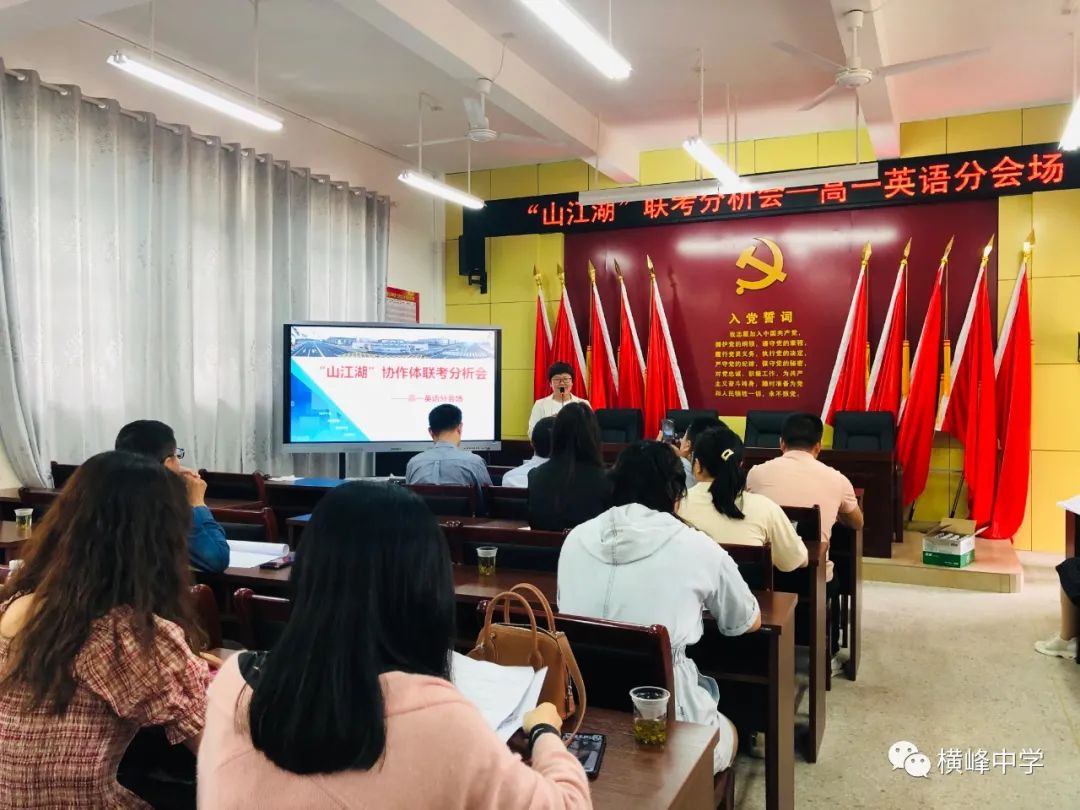 教学质量是学校教育的生命线,更是学校持续发展的原动力,为摸清学生所处的现状和尚存的问题,针对现状共商改进策略,进一步提高教育教学质量,横峰中学于5月30日上午9点在博艺楼召开了“山江湖”协作体英语科联考分析会,参加了联考的8所兄弟学校教师代表齐聚横峰中学,共商教学大计。分析会分高一、高二两个会场进行。