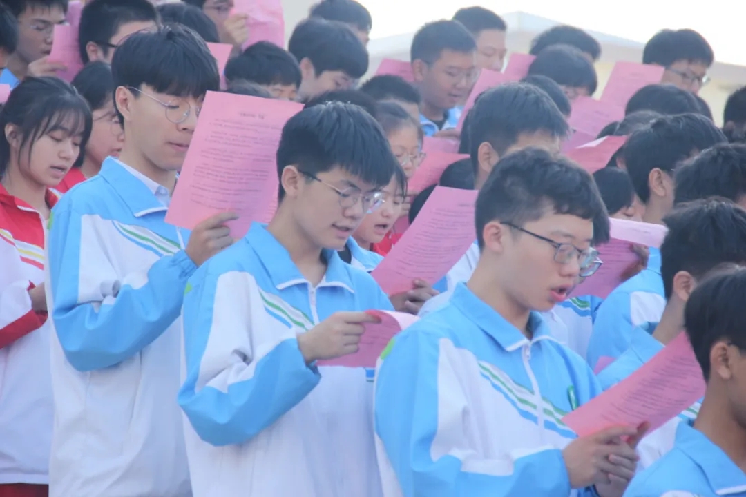 红日初升,其道大光。美哉我少年中国,与天不老!壮哉我中国少年,与国无疆!9月28日上午7点,我校党委书记、校长苏万林携全体班子成员、千余名师生在体育馆前举行“诵唱经典 喜迎华诞”庆国庆爱国诵读活动,大家认真地凝视着手中的诵读稿,仿佛看到了祖国母亲的可爱与慈祥,“我是莫高窟壁画的传人,让那翩翩欲飞的壁画与我们同往。我就是飞天,飞天就是我。我骄傲,我是中国人!” 大家整齐嘹亮地诵读了《可爱的中国》《我骄傲,我是中国人》。万丈豪情拔地起,同学们如空中的艳阳,用自己炙热的心对祖国告白,用激情彭拜的诵读,向祖国深情表白,传递最真挚的爱国情怀。