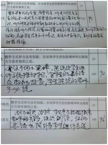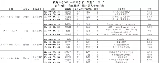 领导参与听课 评委老师们都认真点评,帮助新老师们成长。 本次比赛结果 “四季无声更迭,年华掷地有声。”青年教师既承担着载梦前行的使命,也肩负着开源活水的使命,此次教学活动为横峰中学各位青年教师提供了自我提升的平台,促进了新教师自我专业成长,进一步加强了我校教师队伍建设。此次活动不仅为新教师提供了打磨教学功底、展现自我风采的平台,也促使全校老师在相互学习与交流中有了新的收获与提高,以真正达到以教促研、以评促研的真正目的。 |
