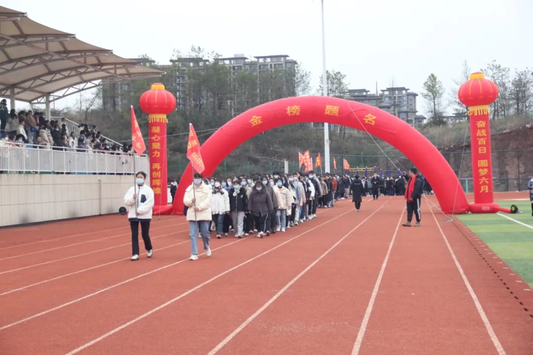 时光如离弦之箭,随风飘逝;岁月如东流逝水,永不回头。一转眼,同学们就长大了,即将走上高考的战场。今天全体高三学子是绝对的主角,社会各界都在期盼着你们的胜利和成功,金榜逐梦终不悔,蟾宫折桂定有君!昂首阔步,勇往直前,高三各班喊着响亮的班级口号依次走过“金榜题名”门!