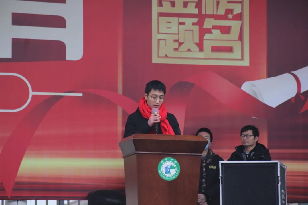 大会第四项 教师代表——课改班班主任吴忠华老师发言 青春年少,岁月如歌,接下来的一百天尤为关键,老师也许会有更严格的要求和更严厉的批评,但在这严苛的背后,更多的是对同学们的爱与不舍。老师不仅是同学们敬爱的师长,更是同学们最忠诚的伙伴。吴老师的精彩发言,道出了我们全体老师的心声。相信同学们也一定能理解老师的用心良苦,只为一百天后你们能破茧成蝶!