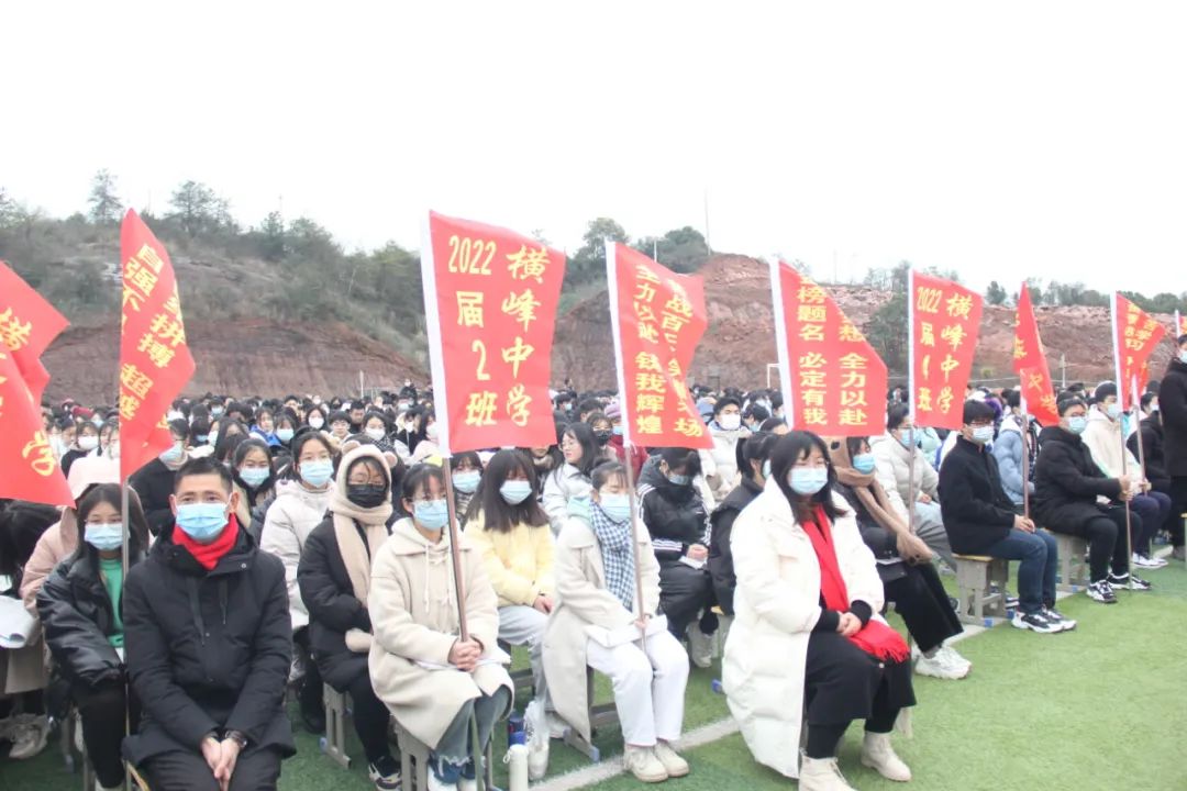 横峰中学党委书记、校长苏万林携校级领导班子成员,2022届高三全体教师、学生,以及部分家长出席了本次大会。