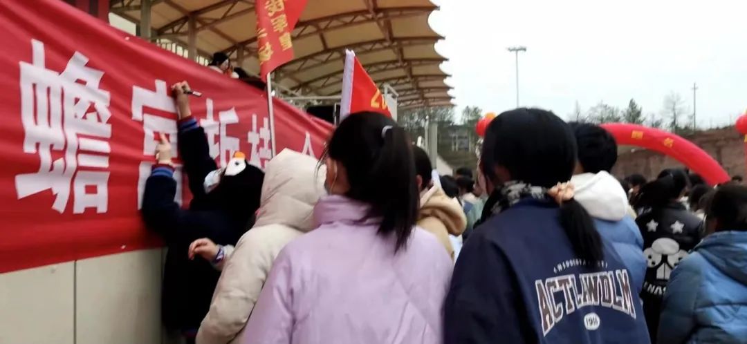 大会第九项 “为梦想签名”活动 道阻且长,行则将至;行而不辍,未来可期。同学们寒窗苦读十二载,梦想已近在眼前。君有志高远,快马大事成!全体同学在“金榜题名”的背景横幅上郑重地签上了自己的名字。这是青春的步履,梦想的足迹,更是我们共同决胜2022年高考的信心和决心!横中学子自强自主,自纪自营,定能弄潮当代,光耀汗青!