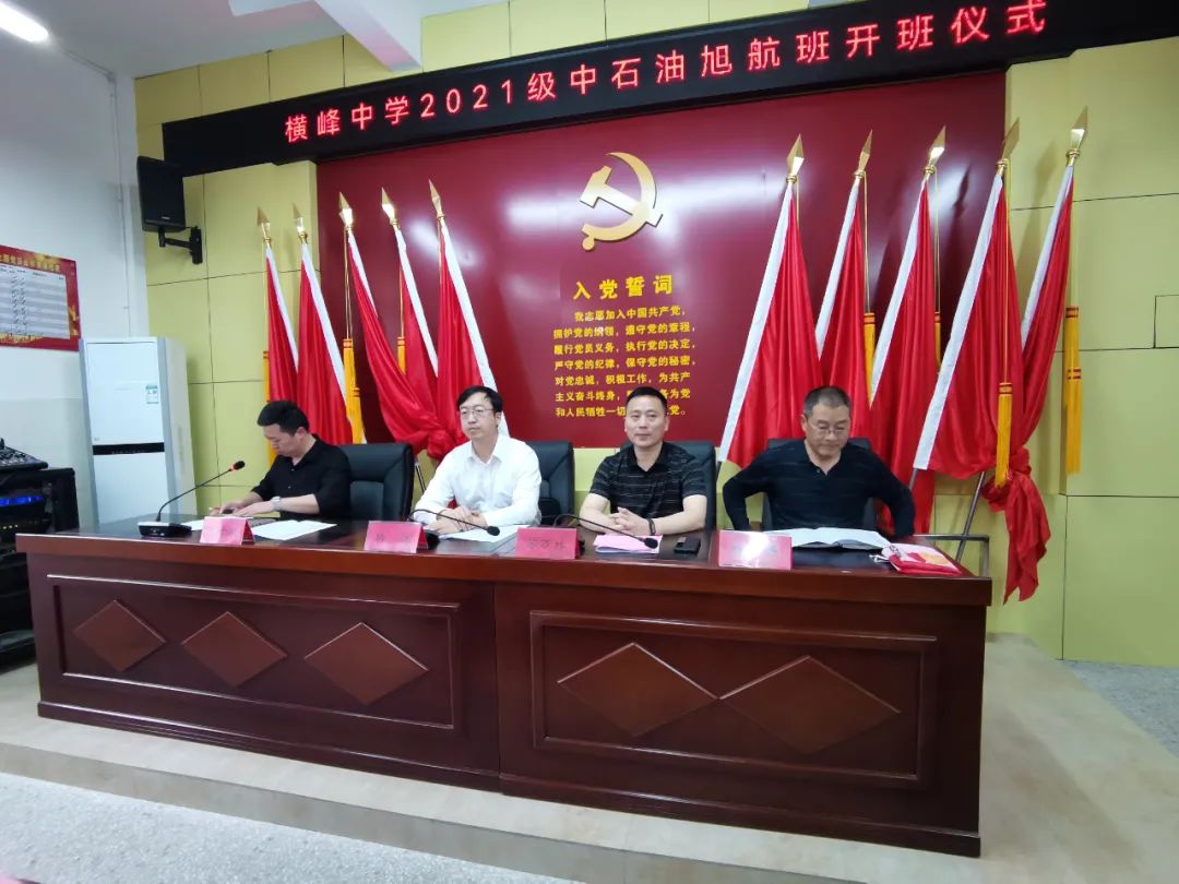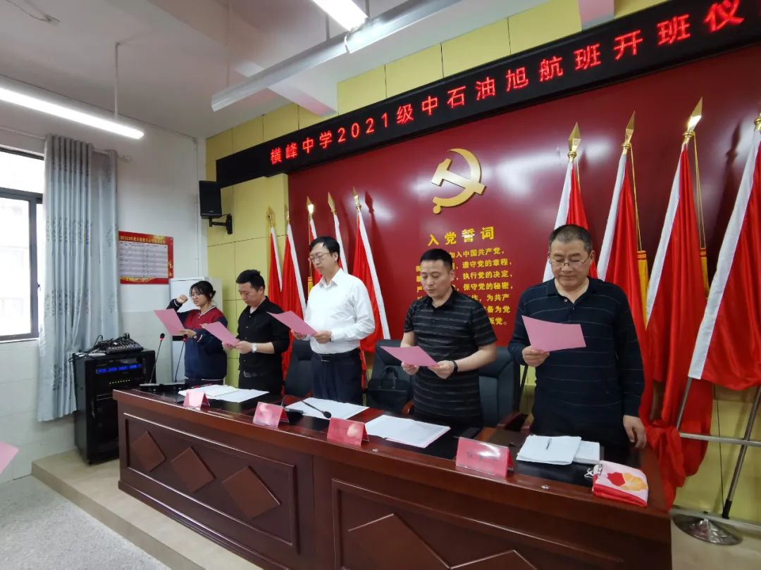 | 宝石花开,情满校园,爱心助学,携手同行。3月14日下午,我校在党员活动室隆重举行了2021级中石油“旭航”班开班仪式。横峰县县委常委、副县长韩冠,我校党委书记、校长苏万林,高一年级组长程世平及50名旭航学子共同参加了开班仪式。仪式由我校校务委员王千明主持。