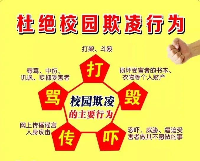 校园欺凌危害巨大,从每个孩子、每个家庭的长远利益出发,迫切需要我们每位家长朋友提高认识,在全社会形成共识,共同防止、杜绝校园欺凌现象的发生。 1.不要溺爱孩子。家长的过度溺爱容易使孩子养成凡事以自我为中心的坏习惯,耐挫能力差,滋生任性、骄横等不良心理,容易成为欺凌者; 2.多与孩子沟通,尊重、关心孩子。父母是孩子成长路上最重要最亲密的人,无论工作再忙,每天也要抽出时间与孩子沟通、交流,注意培养孩子的同情心和换位思考能力,塑造孩子乐观向上、开朗活泼的性格; 3.切忌打骂孩子。当孩子犯错时,要注意耐心说教、正面引导,棍棒教育除了伤害身体,更会给孩子带来心理上的创伤,容易产生恐惧感、遗弃感甚至是逆反心理。经常挨打的孩子,要么具有胆小懦弱的性格,容易成为被欺凌者;要么具有乖张暴戾的性格,容易成为欺凌者; 4.注重言传身教。父母是孩子的第一任老师,言谈举止、性格特点都会对孩子产生长远的影响。尽量不要在孩子面前争吵、抱怨、说脏话、发脾气甚至动粗打人,要培养孩子从小树立正确的人生观、价值观; 5.培养孩子的日常良好习惯。鼓励孩子多参加集体活动、户外活动,多与同龄人交往、沟通,注意培养孩子的情商和良好的人际交往能力。要防范孩子沉迷网络,尤其是避免其接触含有暴力、色情内容的影视作品、视频直播和网络游戏。要防止孩子夜不归宿、饮酒、携带匕首、弹簧刀、藏刀等管制刀具; 6.加强法治教育。重视培养孩子的法律意识、安全意识、自我防范意识,避免受到不法侵害。