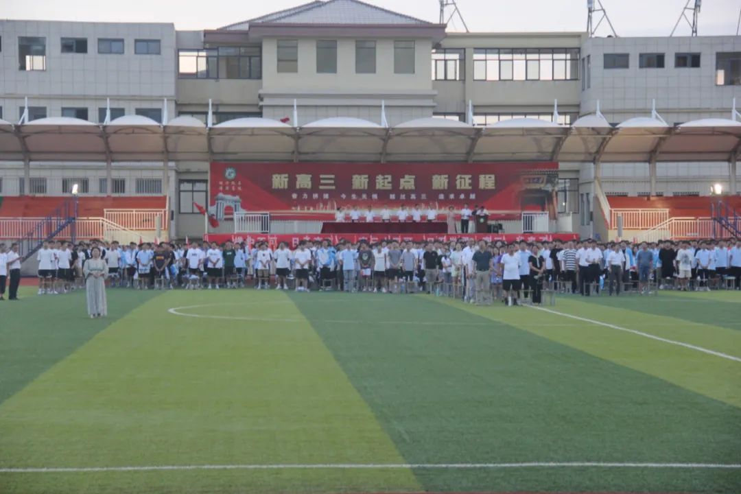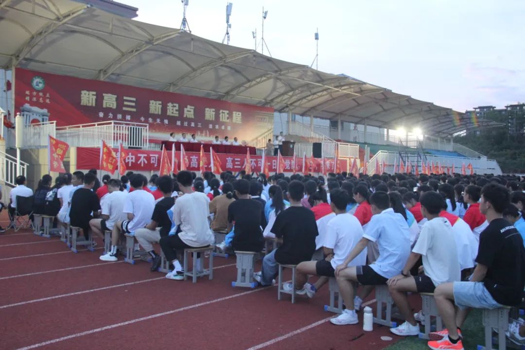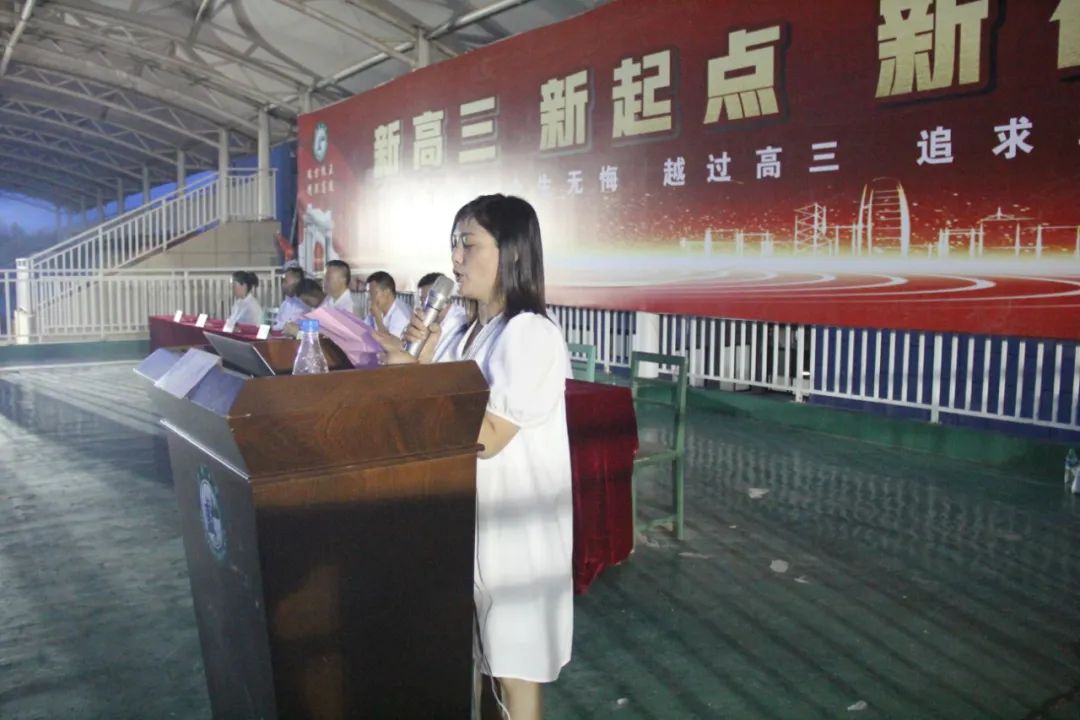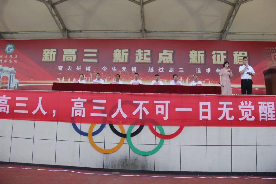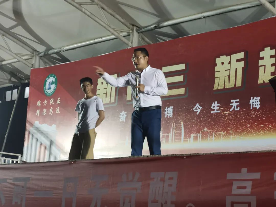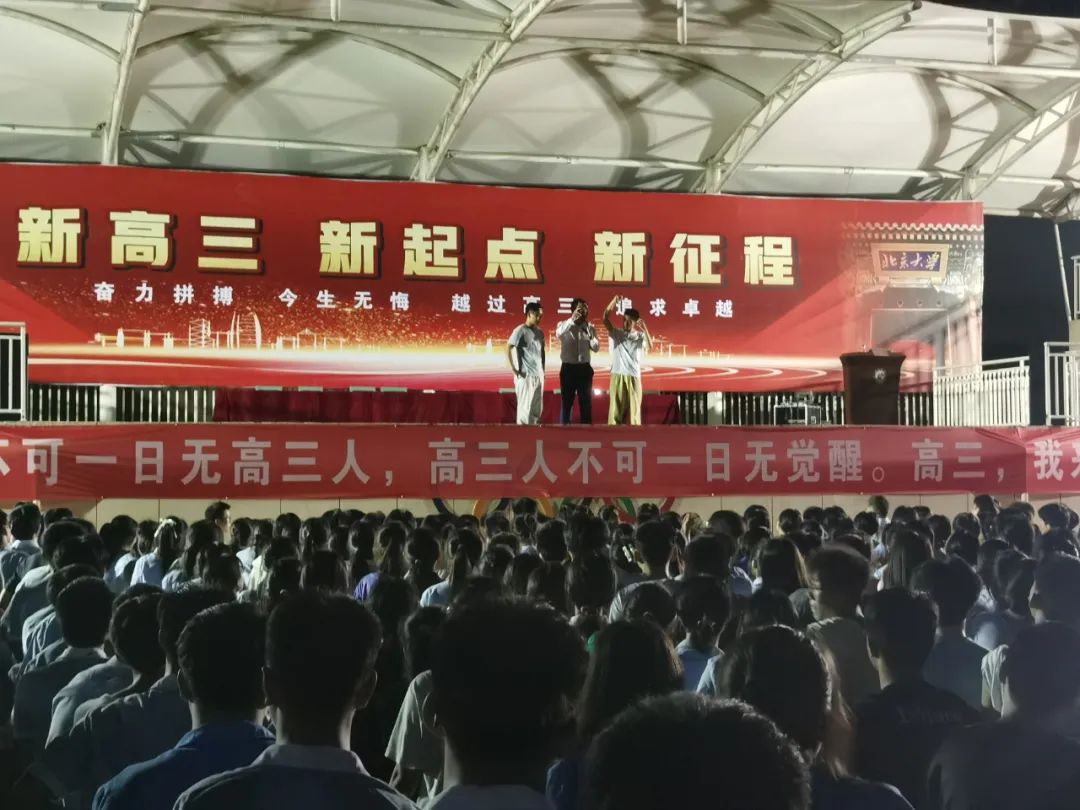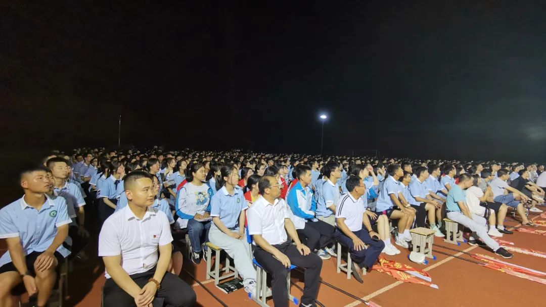 为了鼓舞士气,点燃激情,激励2023届高三学子尽快以最佳的状态全身心备战高考,树立高三意识,6月27日晚上,我校在田径场举行了以“新高三·新起点·新征程”为主题的高三动员大会,我校党委书记、校长苏万林携校级班子成员及全体高三师生参加此次大会,2023届高三蹲点副校长黄爱民主持动员会。