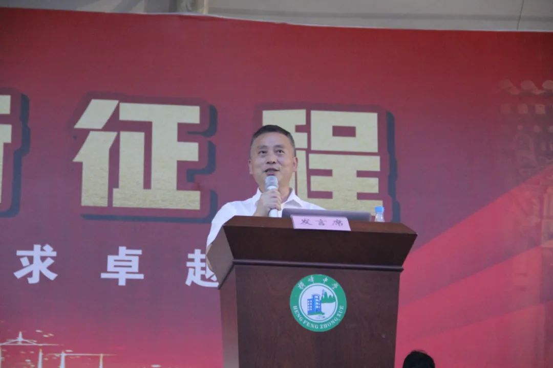 正襟同坐共勉励,掌声雷动启征程。动员大会在庄严的升国旗仪式中拉开帷幕。苏万林校长向全体新高三人汇报了我校2022年高考取得的喜人成绩,并为新高三勇士们送上了勉励人心的五句话,他提出,一要具备“特别能吃苦,特别能坚持,特别能忍耐,特别有信心,特别有激情,特别有方法”的高三精神。二要常怀执着与顽强的信念。三要学会拼时间,合理利用时间。四要善于团结、重视团结的力量。五要有读书的强烈愿望。苏校长的发言深入肺腑,同学们深深认识到高三人的担当、使命、前行的力量,现场报以热烈的掌声。
