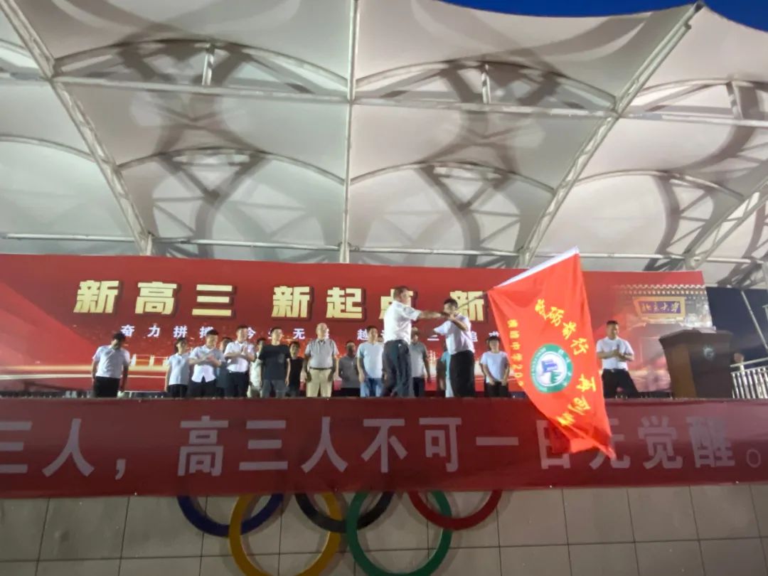 激昂的音乐响起,出征令正式发出,新高三授旗仪式正式启动。各班班主任接旗,他们接下的不仅仅是一面旗帜,还有横中高三人的拼搏精神。少年自有少年强,心似朝阳万丈光! 千难万挡我去闯,今朝唯我少年郎!新高三年级蓄势待发!