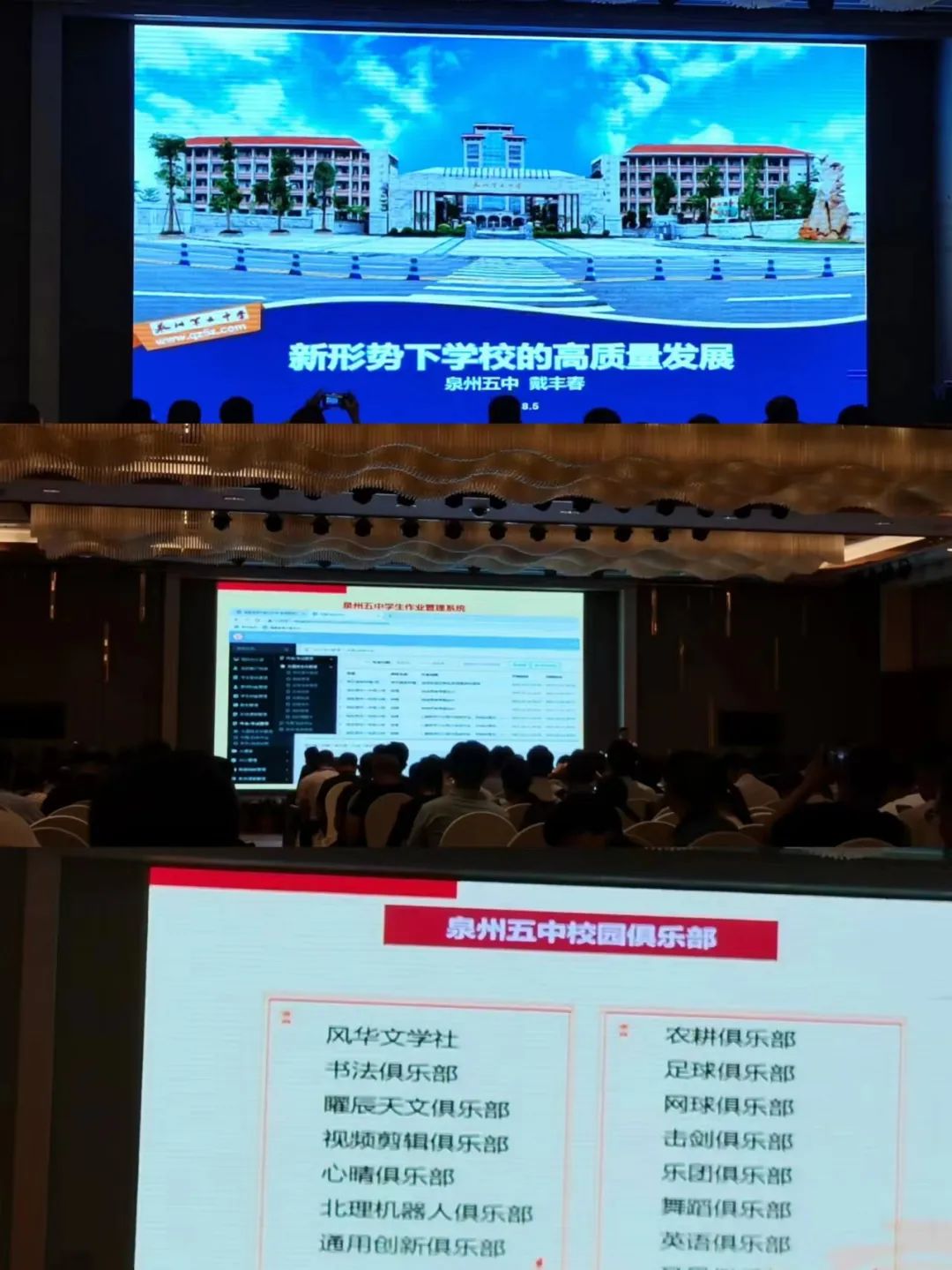 戴丰春主任以泉州五中为例,从学校的各类管理出发,阐述了在新形势下,学校要高质量发展必须立足于学生的多元化发展,建立完善的管理体系。