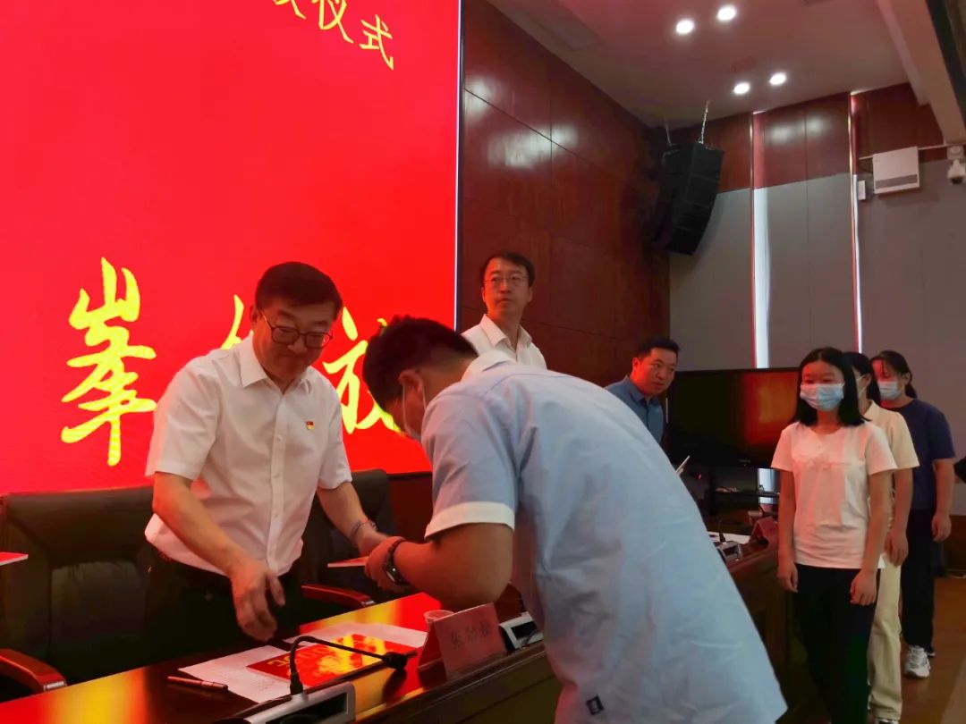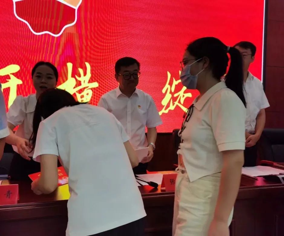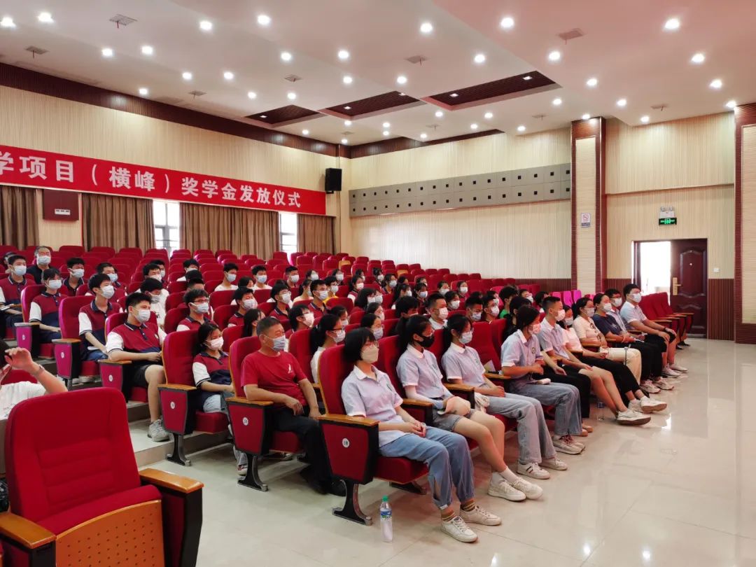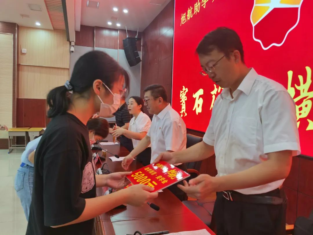 副县长吴青宣读了2022届旭航班奖学金获奖学生名单,随后,与会领导为本届旭航班21位学子送上每人5000元的奖学金。