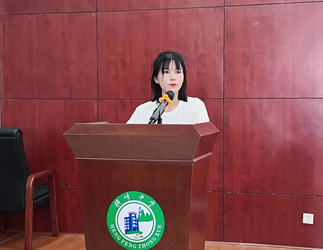 新教师代表童艳婷表达了成为横中一员的喜悦之情,横峰中学是她的母校,承载着她最珍贵的青春记忆,现在可以回到母校工作感到无比激动。她表示,今后会好好向前辈老师们学习,无愧于这份光荣的职业。