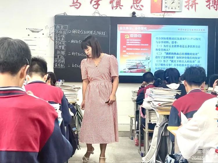 独特的导入素材令人耳目一新。徐老师在上课之前回顾旧知承接新课,接着在悲怆的《国际歌》声中,我们正式走进了今天的课堂:科学社会主义的理论与实践。 徐老师利用《国际歌》中三句歌词引出三个问题,引导学生自主学习,合作探究。在徐老师循循善诱下,几位学生都能够顺利解答。 接着,徐老师以表格的形式分层分点展示知识点,条理清晰;通过例题综合考查学生对本堂课的掌握情况;最后,以思维导图对本堂课进行一个总结,这样有利于学生厘清思维脉络,掌握主观题答题技巧。
