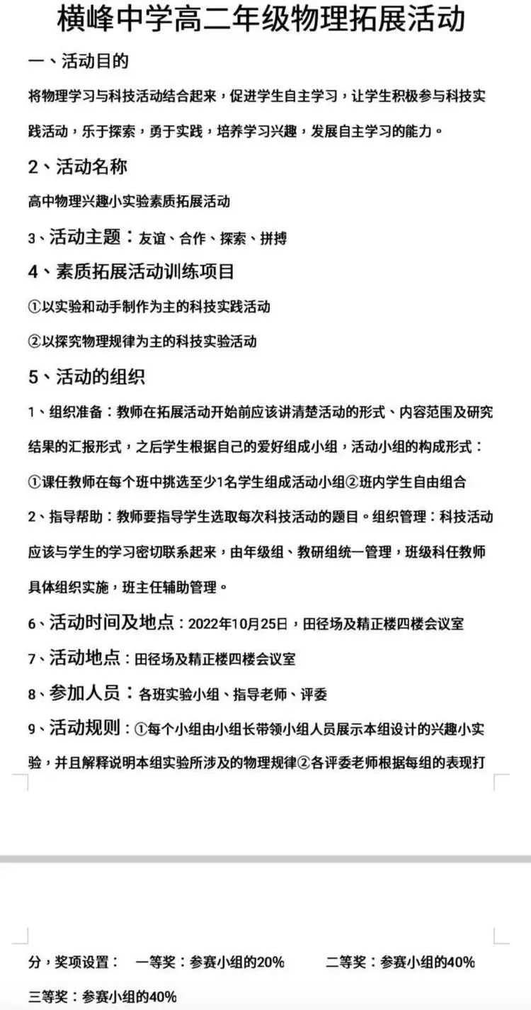 | 纸上终觉浅 实践出真知——横峰中学举行喜迎二十大、奋进新征程“趣味物理实验”展示活动 | |||