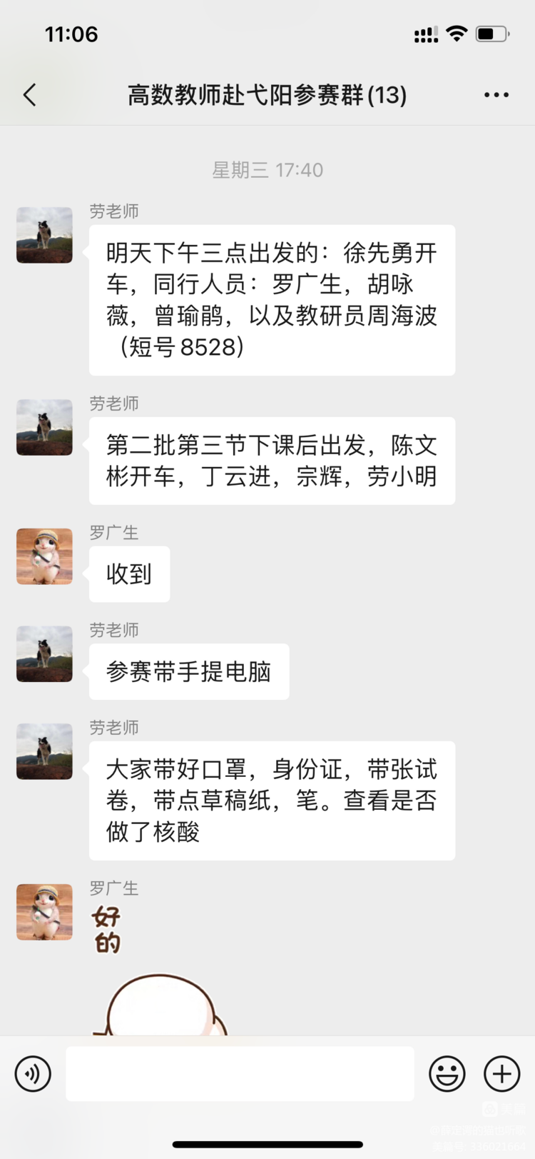 为进一步提升我市广大数学教师的专业素养,强化对数学试卷讲评课的授课艺术,上饶市教育发展研究中心决定开展全市中学数学教师试卷讲评课例展示比赛活动。 比赛时间为2022年11月4日上午至5日下午,为期两天,活动分为“解题”和“课例展示”两个环节的进行。 3号下午,横峰中学的三名参赛选手、指导老师、横峰中学数学名师工作室全体成员和县教研室教研员周海波一行前往弋阳准备参赛。