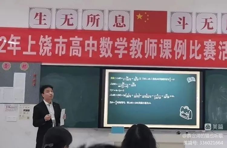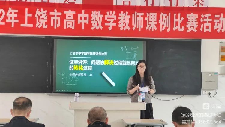 经过两天激烈的角逐,获得2022年上饶市高中数学教师课例比赛一等奖的选手是胡咏薇(指导老师陈文彬);获得二等奖的选手有徐先勇(指导老师宗辉)和罗广生(指导老师曾瑜鹃)。