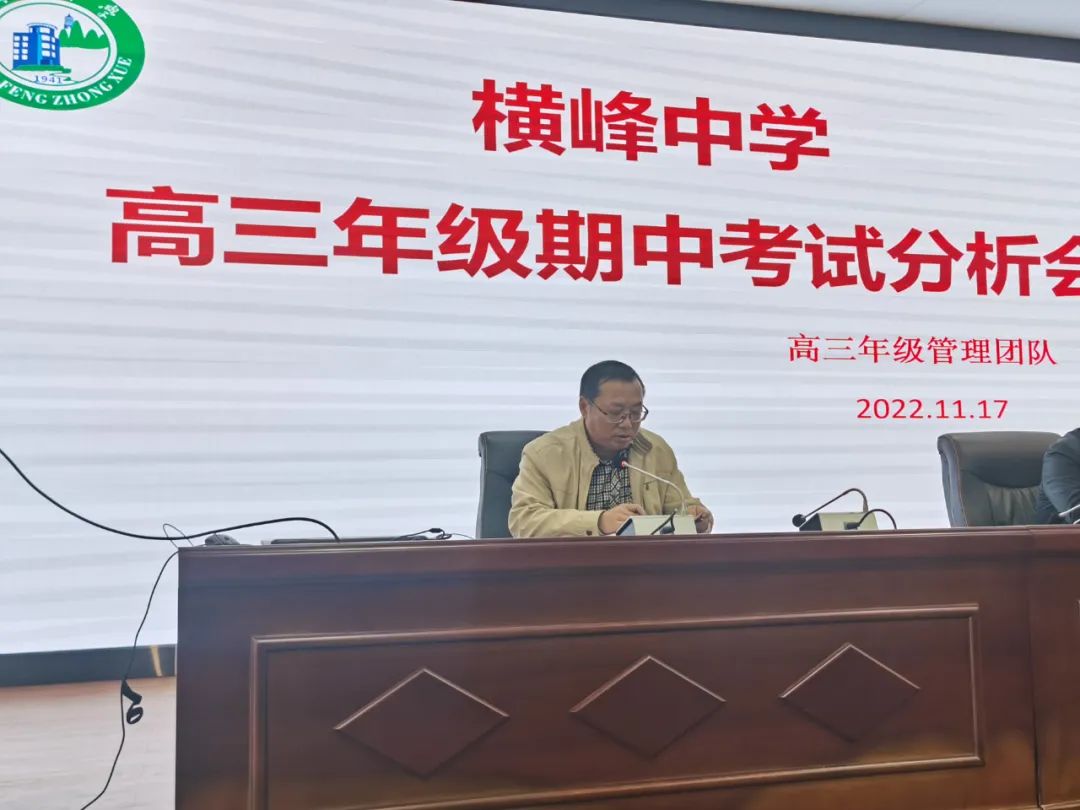 总结是提升的阶梯,反思是进步的起点。在期中考试结束后,11月17日上午,横峰中学高三年级组召开期中考试成绩分析会,学校党委书记、校长苏万林,副校长黄爱民、纪委书记黄继人与全体高三教师参加会议,高三年级组长郑建忠主持会议。