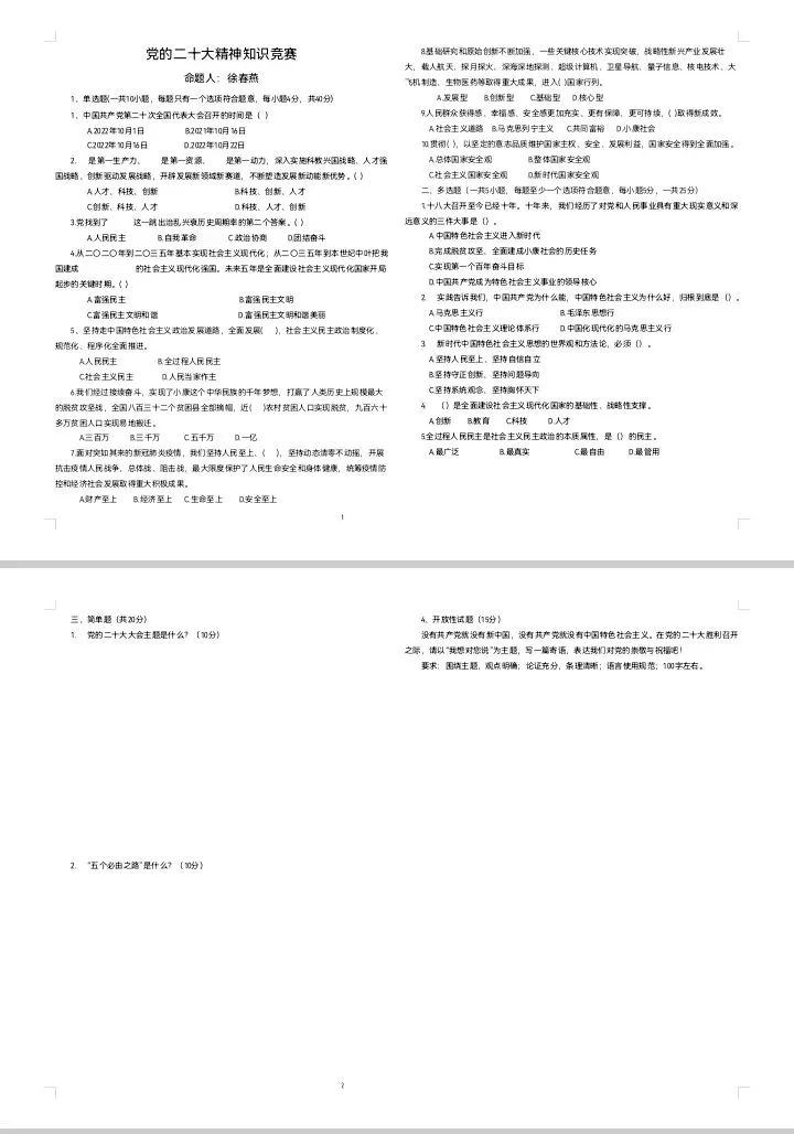 本次竞赛题目由高三政治备课组命题,共设计10个单选题,5个多选题和3个主观题。题目丰富,难度适中,涵盖政治、党建、法治、安全、社会等多个方面,既突出理论产值,又贴近学习生活。