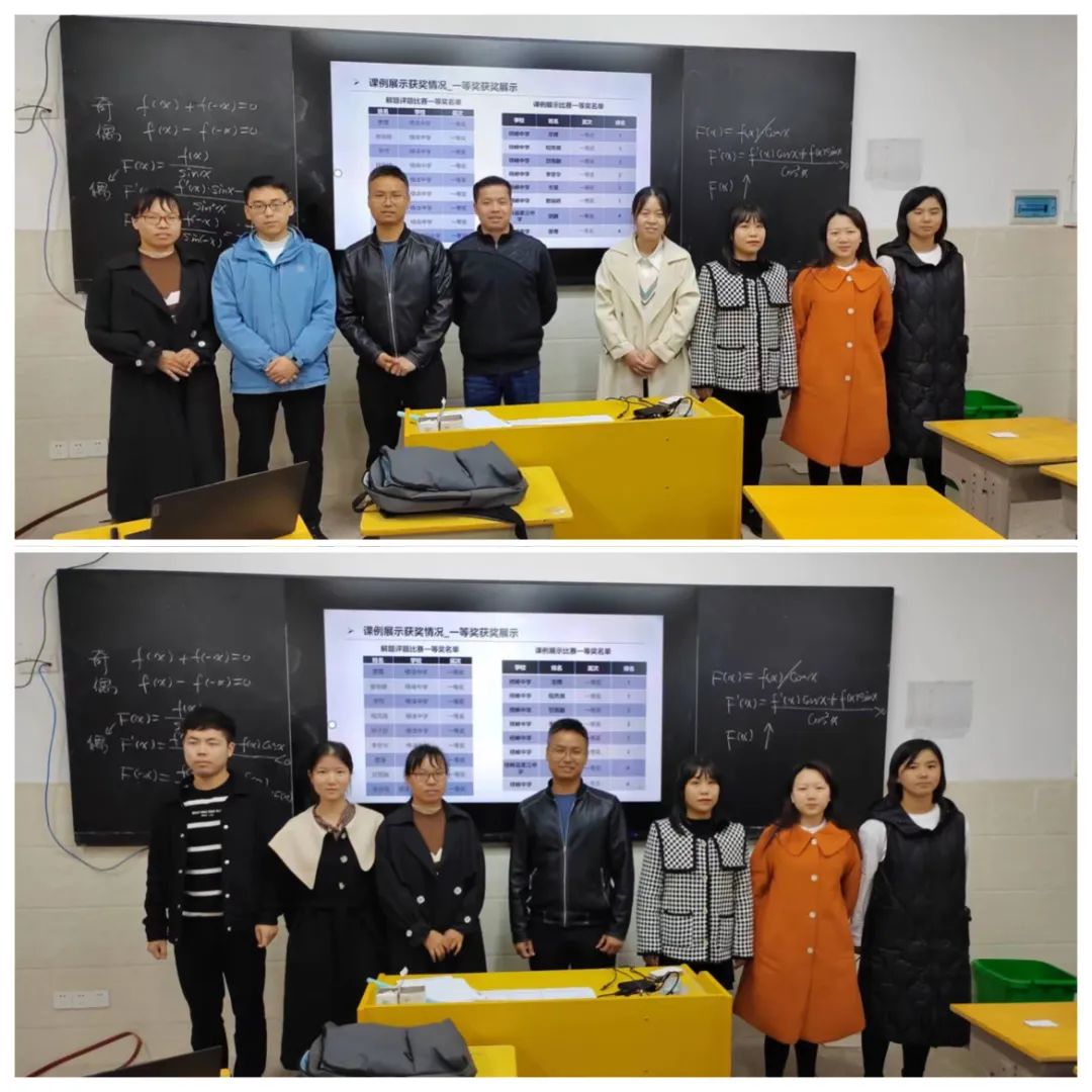 在准备时间短,难度系数大的情况下,各位老师针对题目特点,分析题目条件,对解题思路及策略进行了深入的阐述,准确地提炼出题目中的分类思想及构图模型。整场比赛充实而精彩,充分体现了参赛教师扎实的个人基本功,展示了优秀数学教师的风采。 评委点评、获奖合影
