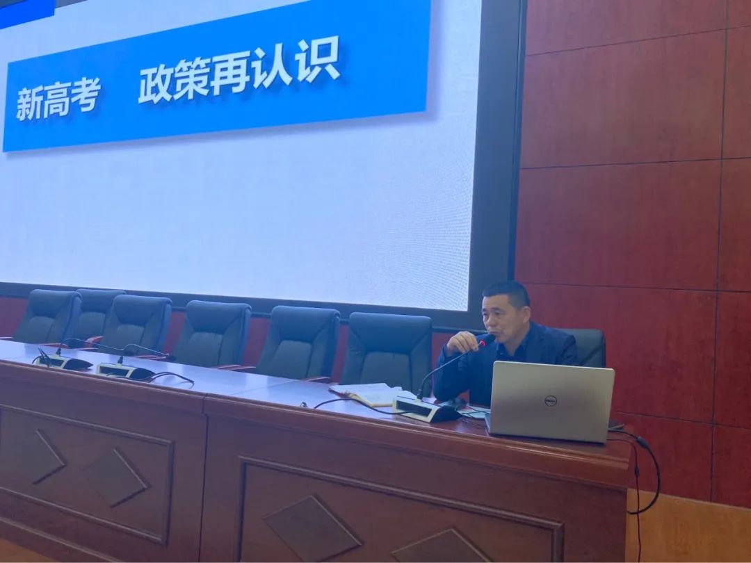 在“新课程、新教材、新高考”的背景下,我们正面临着育人方式的变革,全体教师都要加强相关业务的学习,每位老师要清楚选科、走班、组合方式、赋分模式、录取模式等“新高考”的要求。洪校长再一次与各位教师交流分享了选科走班的心得经验,并针对高一年级学生选科的初步摸排结果进行了总结,在结合分析其他省市新高考数据的基础上,与大家共同探讨更加适合我校新生的选科走班模式,实现学生利益的最大化。