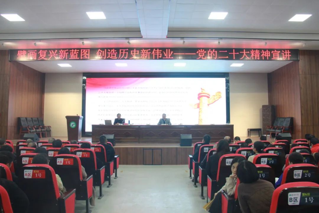 宣讲会上,何宜斌以“擘画复兴新蓝图,创造历史新伟业”为主题,分三个板块,从“会议报告内容要点解读”“党的二十大会议精神解读”“擘画复兴新蓝图,创造历史新伟业”三个方面与我校教师进行深入交流。他对党的二十大提出的新思想新论断、作出的新部署新要求作了全面系统深入的宣讲解读。
