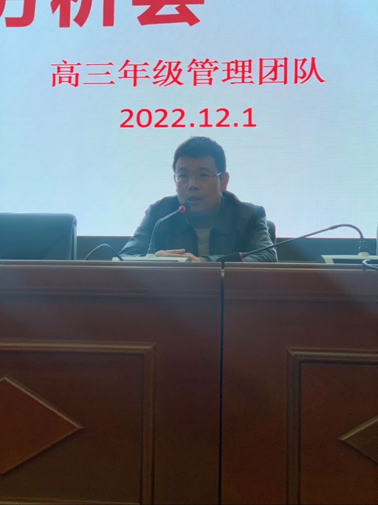 校党委副书记、副校长、年级分管领导黄爱民强调,从与兄弟学校的横向对比和与我校自身纵向对比中,我们都取得了明显的进步,也发现了一定的不足。他指出,我们要结合本次联考数据,深入分析问题及问题产生的根源,针对教学出现的问题查找措施,能够做到有的放矢,推动各项教学工作取得实效,以达到预期目标。他强调,全体同仁需增强时间观念,提紧高考意识,务必坚定信心,调整战略,确定重点培养目标,进一步发挥备课组的集体智慧的作用,细化复习方案,为高考提分赋能。 四、领导寄语总结