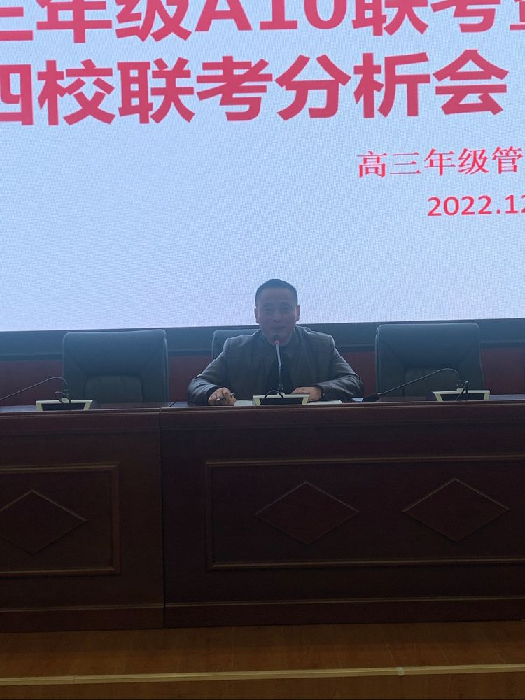 喜看稻菽千重浪,遍地英雄下夕烟。随着联考落下帷幕,12月1日下午,我校召开高三年级A10联考暨四校联考分析会,旨在总结经验,分析得失,饱满师生热情、昂扬师生斗志,引导以科学的方法投入高三总复习。我校党委书记、校长苏万林,党委副书记、副校长、年级分管领导黄爱民,副校长洪广罗、侯弋峰,校纪委书记黄继人,校课程考试处主任兰星伏及全体高三教师参加了会议,会议由高三年级组长郑建忠主持。 年级管理团队成员徐先勇老师通过数据展示、图表对比、文字概括等方法,主要从四校层面和校级层面把九个学科和每个班级的成绩从纵向和横向两个层面进行了汇总对比。他希望参会老师能做到关注差距,协调合力,全面提高高三年级的教学成绩。 年级组长郑老师通报了此次联考中取得优胜的班级: