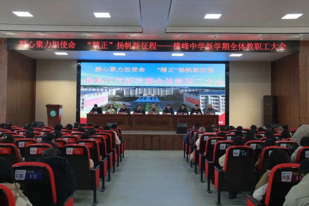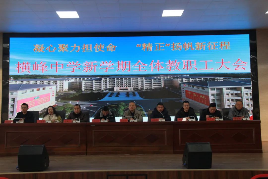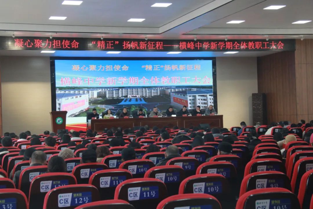 岁序更替,华章日新,同心奋进,逐梦未来。喜兔呈祥舒万物,同心同德开新局!为确保2023年春季开学工作安全、平稳、有序进行,2023年1月29日下午,横峰中学召开春季开学全体教职工大会。我校党委书记、校长苏万林携校行政领导班子成员与全体教职员工齐聚一堂,齐心协力,以饱满的热情共谋开局新篇章!本次大会由我校党委副书记、副校长黄爱民主持。
