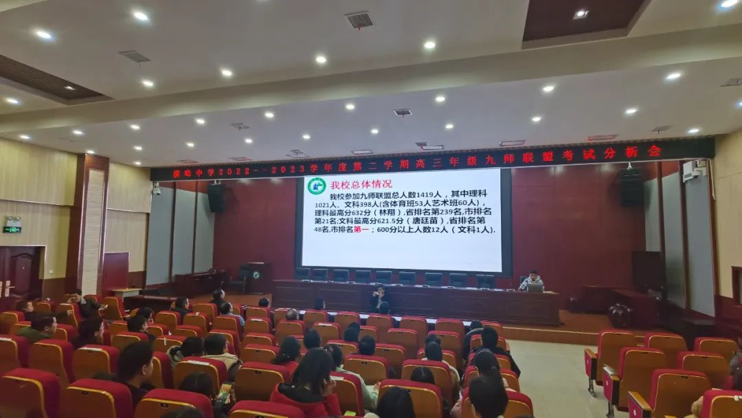 “行远必自迩,鉴往方知来。”为进一步提高我校高考复习的备考效率,力争在2023年高考中取得满意的成绩, 2月6日下午,我校在四楼会议室召开了高三年级第二学期九师联盟考试成绩分析会,深入分析了高三年级此次考试的总体情况。会议由高三年级组长郑建忠主持,校党委书记、校长苏万林及全体高三人参加了会议。
