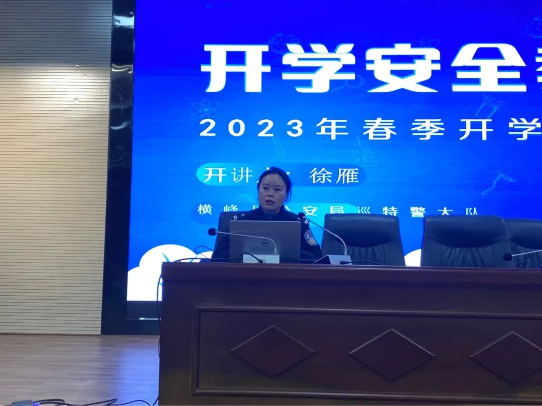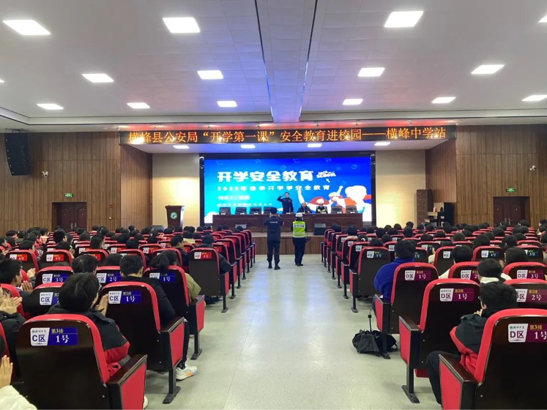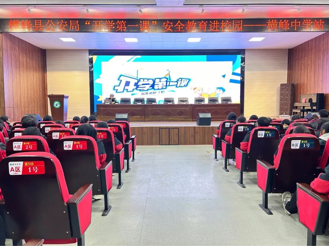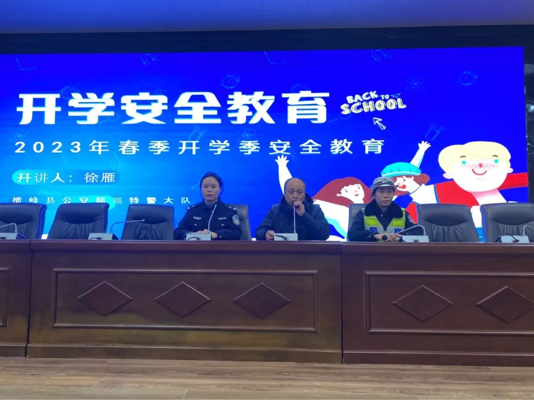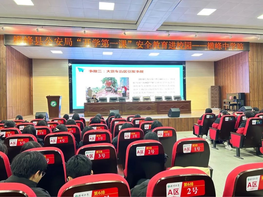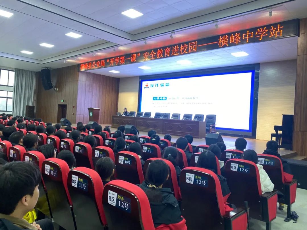 关爱生命始于心,交通安全践于行。为强化防诈骗安全、校园安全、道路交通安全宣传,切实提高学生的各种安全意识,筑牢校园安全防护墙,推进平安校园建设,2月8日,县特警大队副大队长徐雁和交警大队法宣科苏丹警官来我校开展防诈骗、校园安全以及道路交通安全知识讲座,为学子送上开学安全第一课本。本次活动由横峰中学政教处主任吴有福主持。