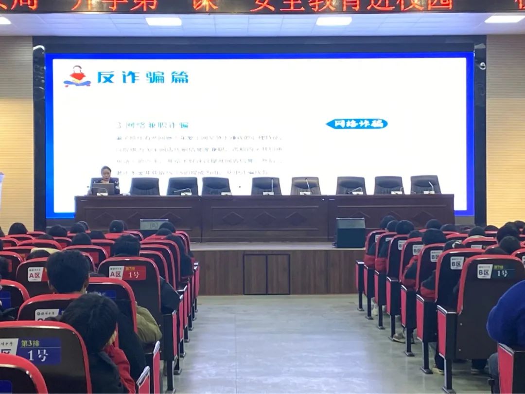 讲座中,徐雁警官以“防范网络诈骗”为主题,紧紧围绕“什么是网络诈骗”“哪些是易骗类型”“我们该怎么做”等内容,向在座的师生展开宣讲。她从近期涉校案件实例切入,详细讲解冒充客服退款、网上刷单、网上交友等典型案例,深刻揭露网络诈骗的特点、类型、手段及危害,生动详细地讲解应对诈骗的措施和方法,提醒广大师生要做到“不听、不信、不转账”。徐警官以案释诈、依法论事,深入浅出的讲解为广大师生送上一场反诈知识的“盛宴”。