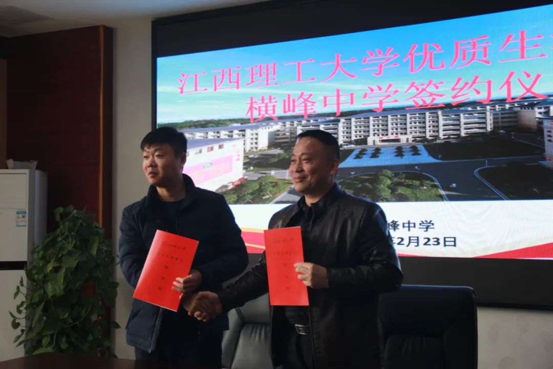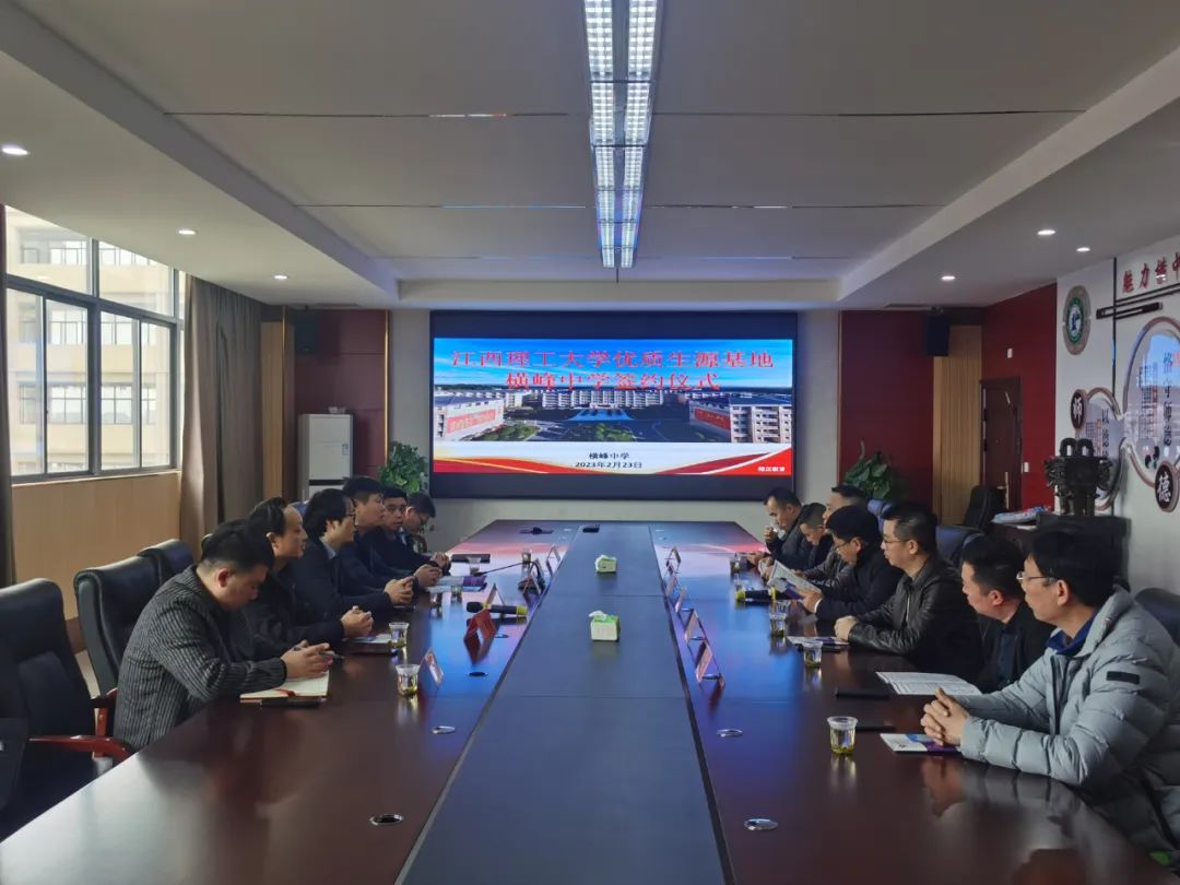 2月23日上午,横峰中学与江西理工大学建立优质生源基地签约仪式在横峰中学行政会议室举行。江西理工大学稀土学院副书记李振、稀土学院副院长漆小鹏、材料冶金化学学部副书记申邦坡、辅导员黄松炜,市科学技术局副局长刘先斌,市考试中心主任甘敦权、县教体局副局长蔡有春、招生办主任童孜基,横峰中学党委书记、校长苏万林及班子成员出席了此次签约仪式。