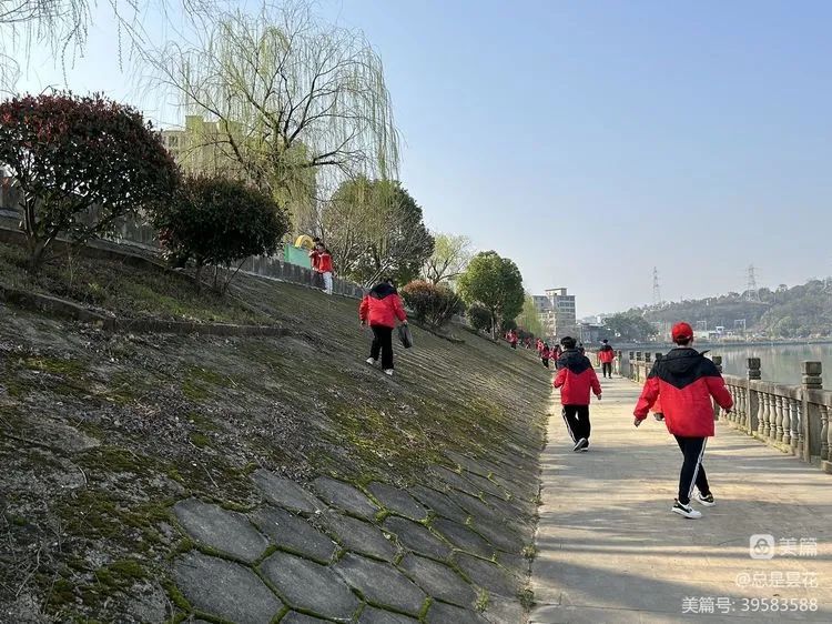 3月5日是个特别的日子——学习雷锋日,为深入学习雷锋精神,横峰中学志愿者们上午8点在校门口集合,前往我们的母亲河——岑港河的河堤两岸进行卫生大扫除。 行走在河畔堤旁 |